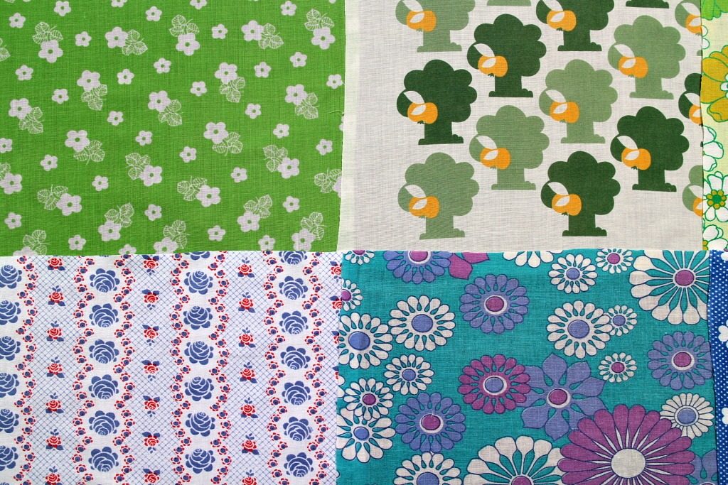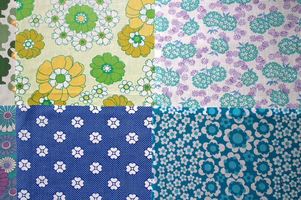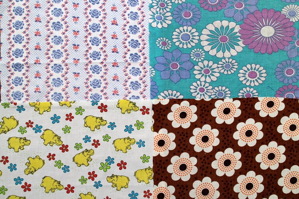清楚なバラ模様やポップなフラワーモチーフなどレトロ布の魅力を存分に味わえるヴィンテージはぎれセット。
