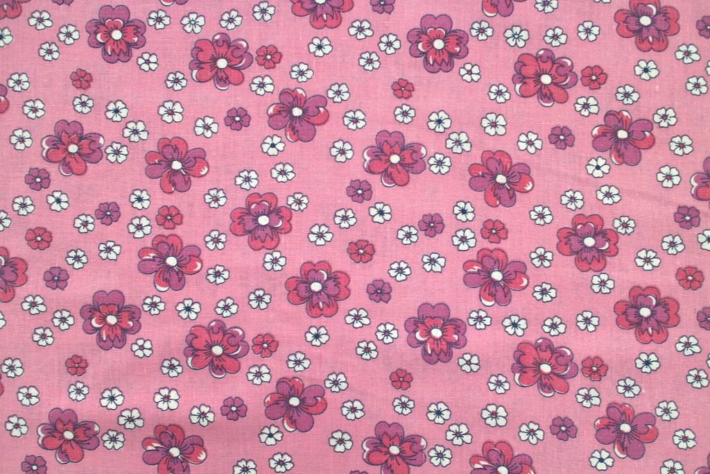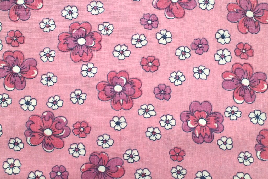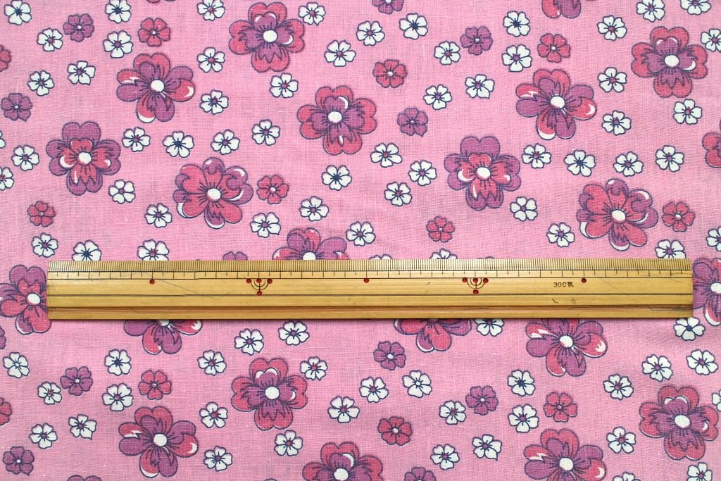 少女コミック風ピンクの花柄ヴィンテージコットンファブリック 幅120cm