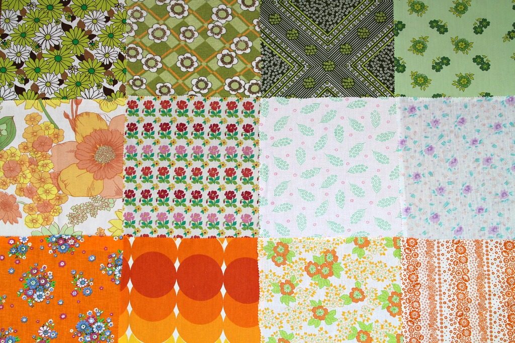 コンテンツにスキップ幾何学&バラ柄ほかレトロ柄いっぱいヴィンテージはぎれ12枚セット