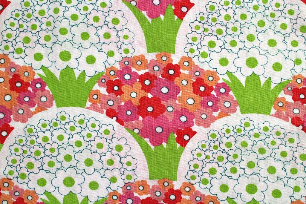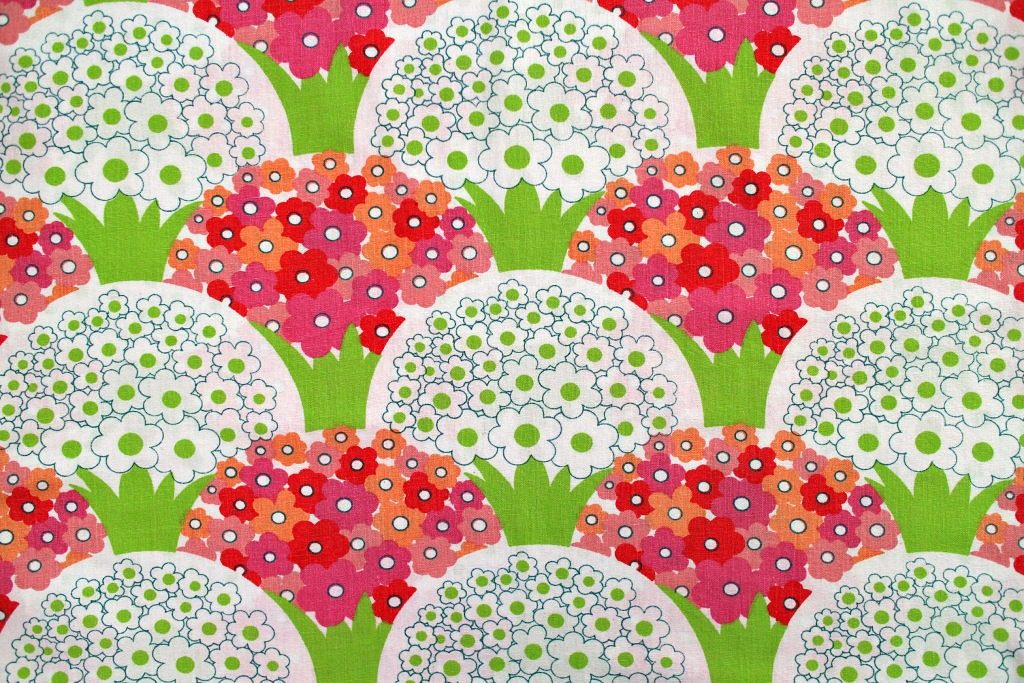 扇型のフラワーブーケがうろこ状に並んだ、優しさいっぱいのヴィンテージ生地。