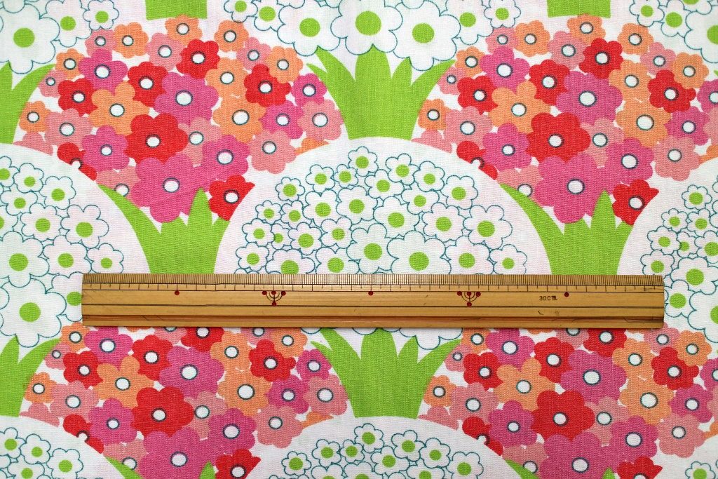 扇の花束が可愛いレトロなコットンファブリック(ピンク&グリーン) 幅135cm