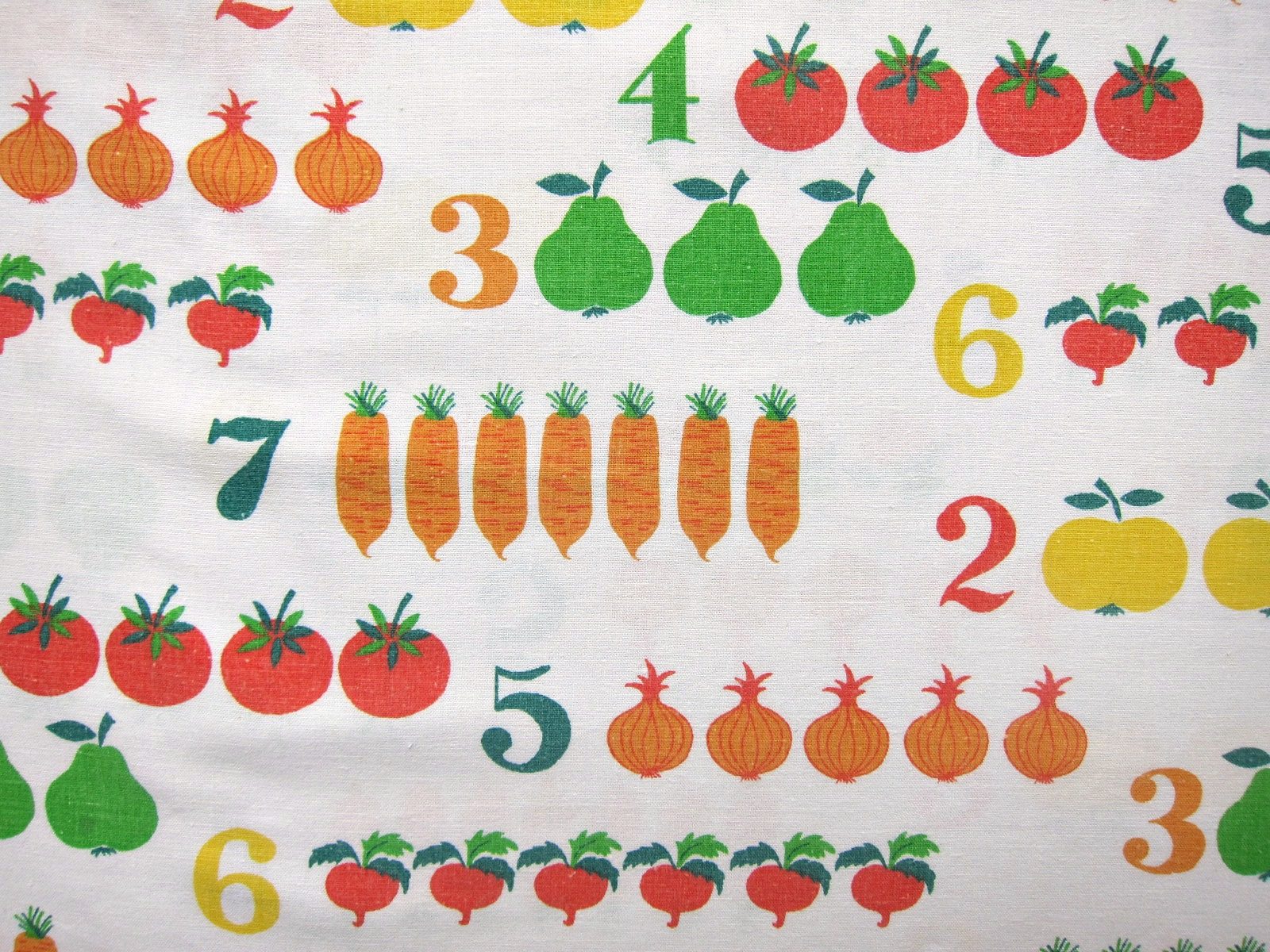 数字と野菜、果物のかわいらしいイラストが入ったヴィンテージ生地。