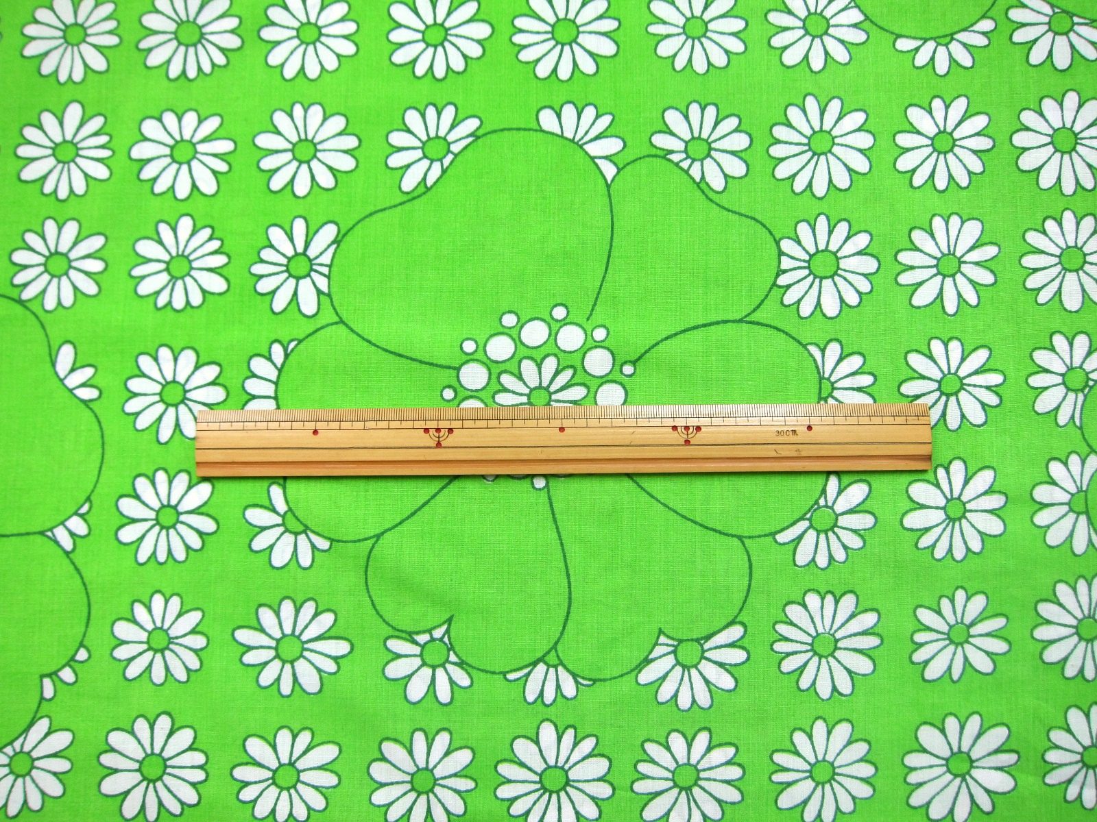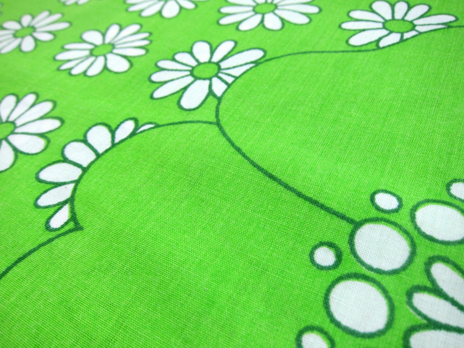 コンテンツにスキップ70年代のDDR(旧東ドイツ)時代の、白い小花と大きな緑のお花がデザインされたレトロなファブリック。
