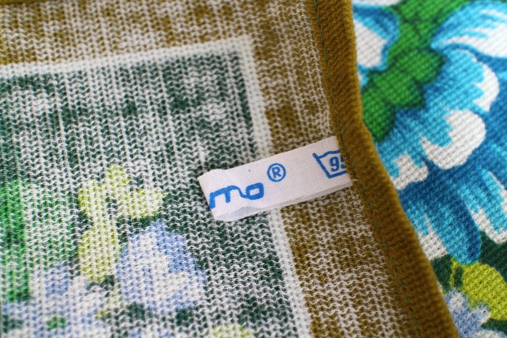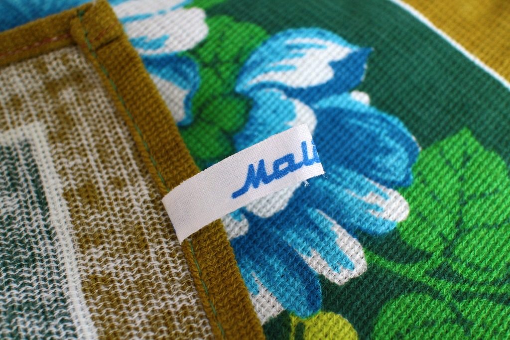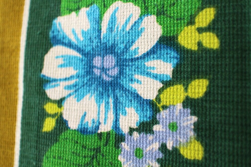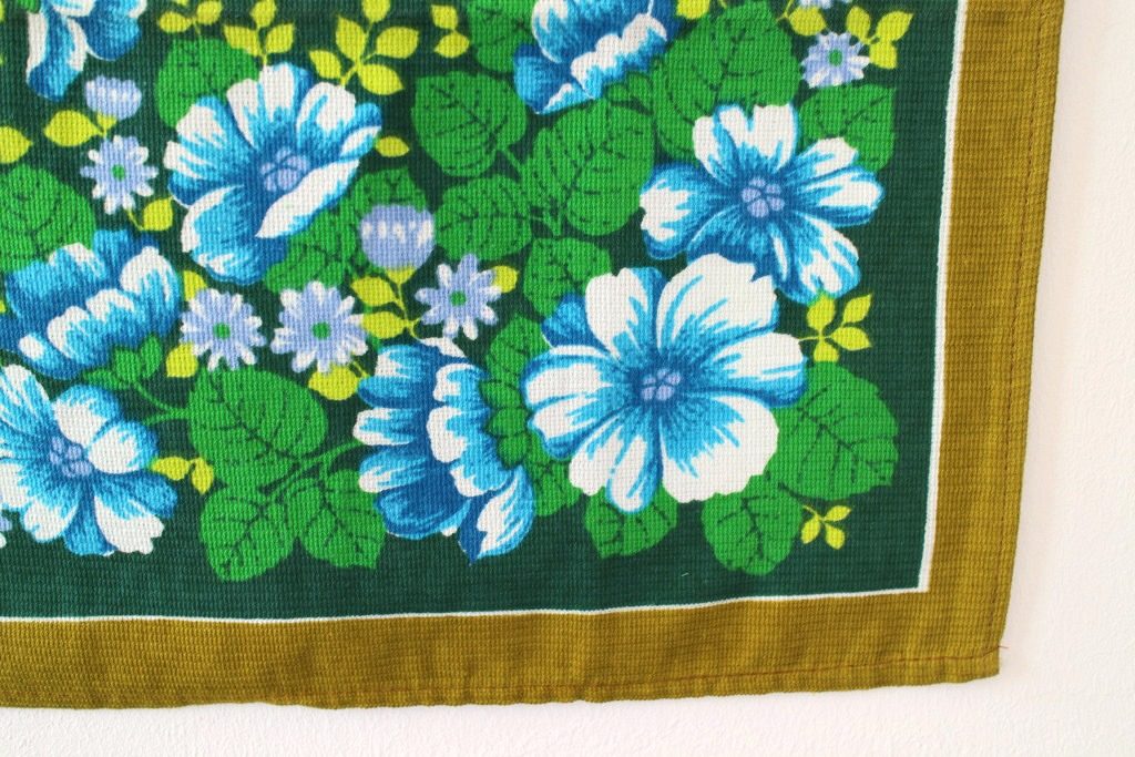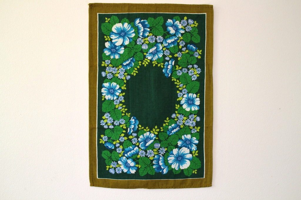 旧東ドイツMalimo社製渋い花柄ヴィンテージ未使用キッチンクロス(深緑)