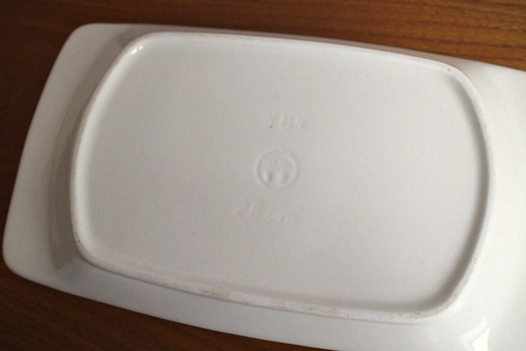 陶器メーカーTorgauによりDDR時代に生産された長方形のクリーム色のビンテージ皿。