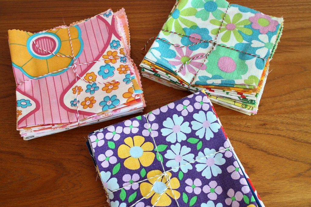 オレンジ〜レッド系を中心にさまざまなスタイルのレトロ花模様を集めたお得なビンテージはぎれセット。