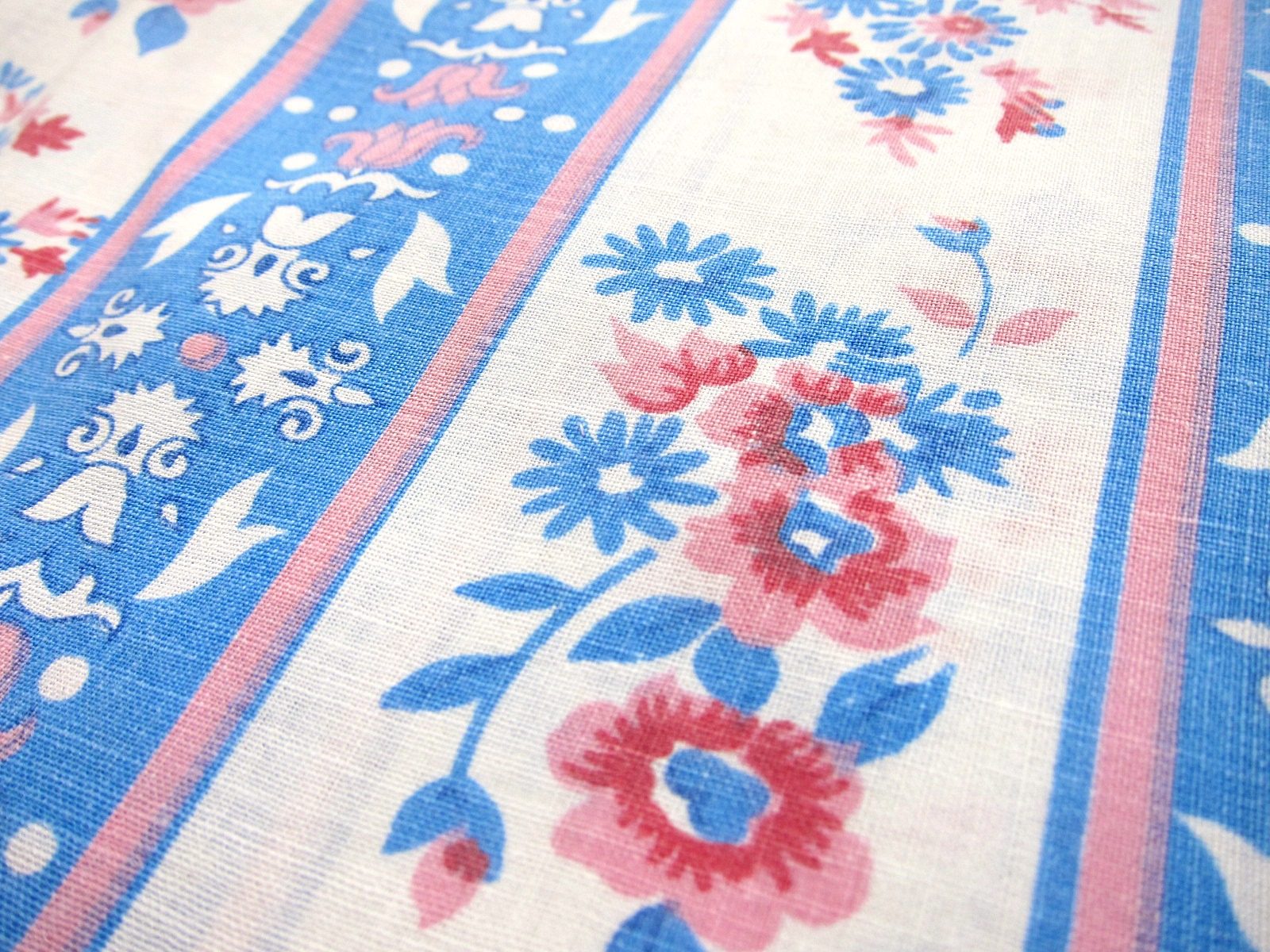 コンテンツにスキップ2種類のタッチで描かれた花柄をライン状に配置した、いかにも東欧的なデザインのヴィンテージファブリック。