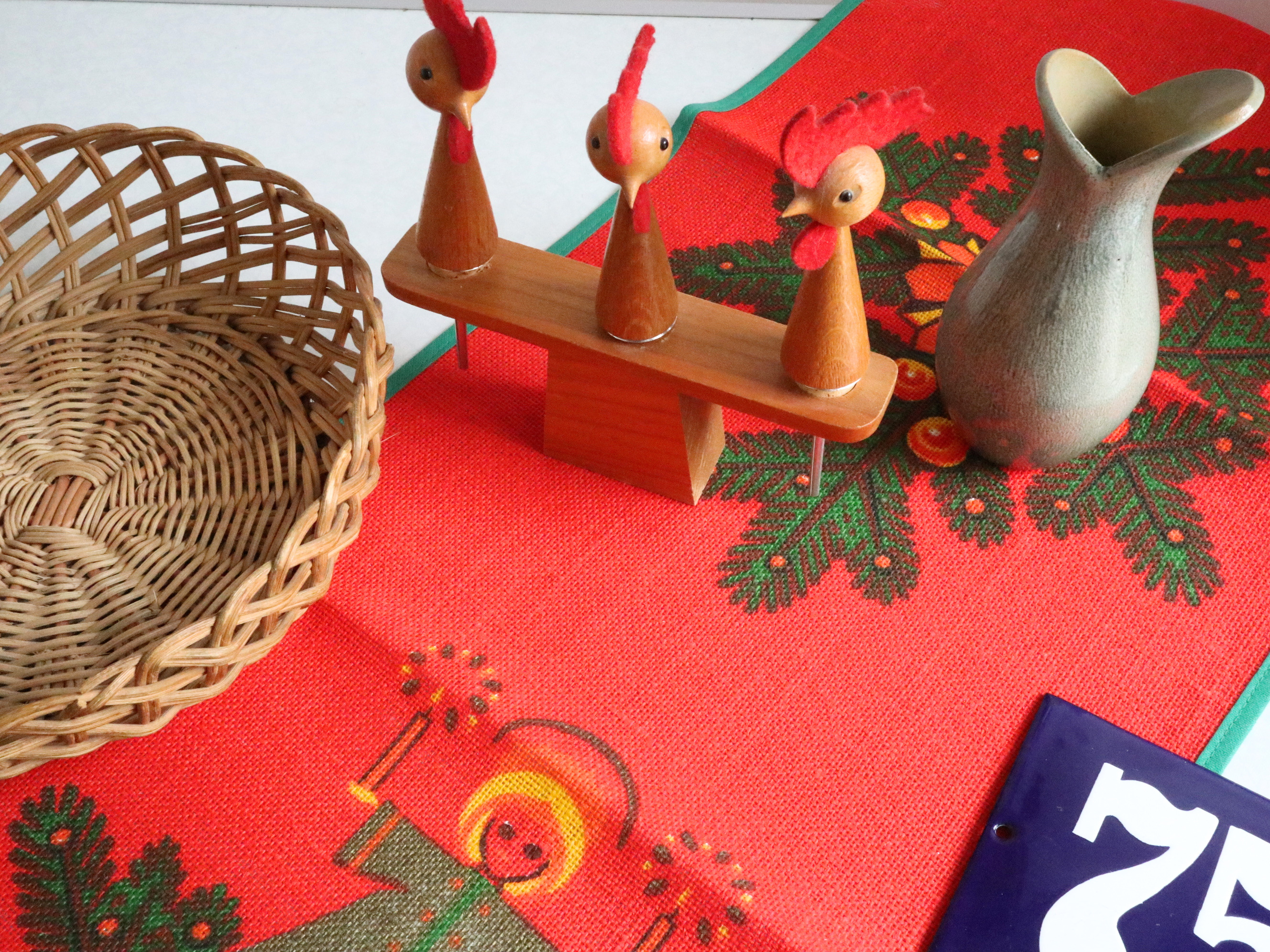 ベルリンの蚤の市で見つけたヴィンテージ雑貨を、クリスマスらしい赤とグリーンのトーンでまとめたセットです。