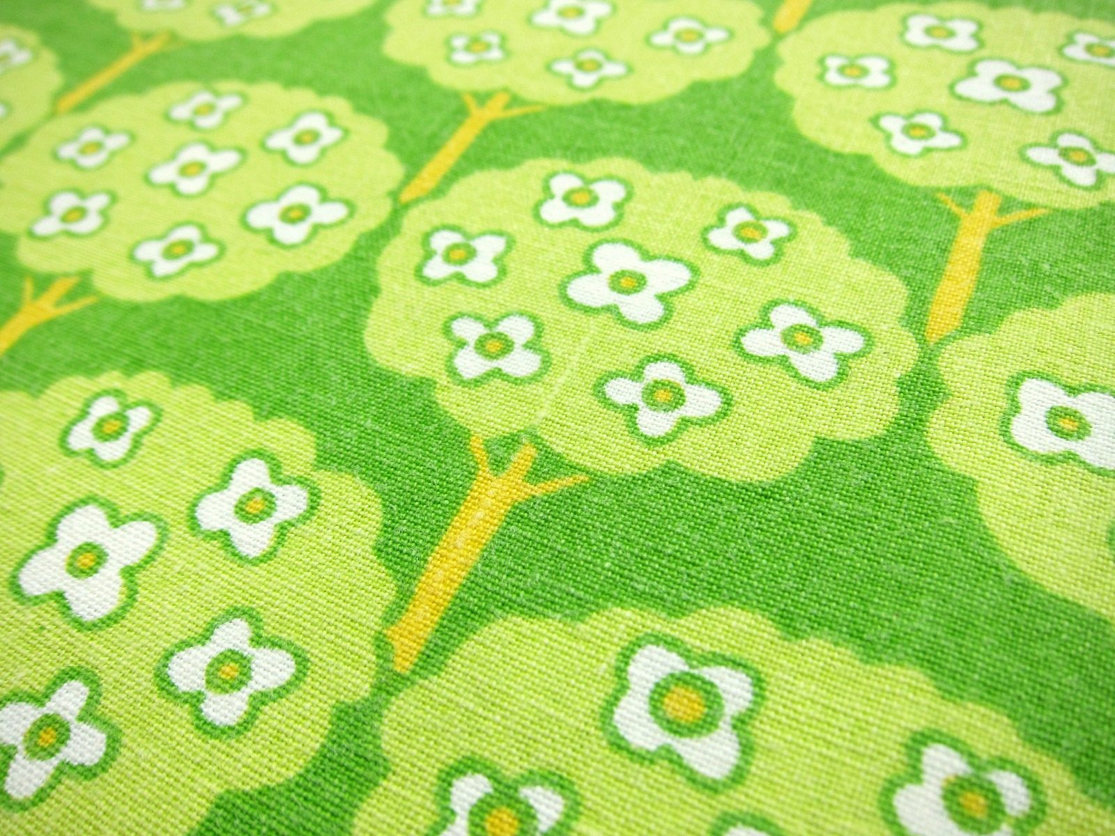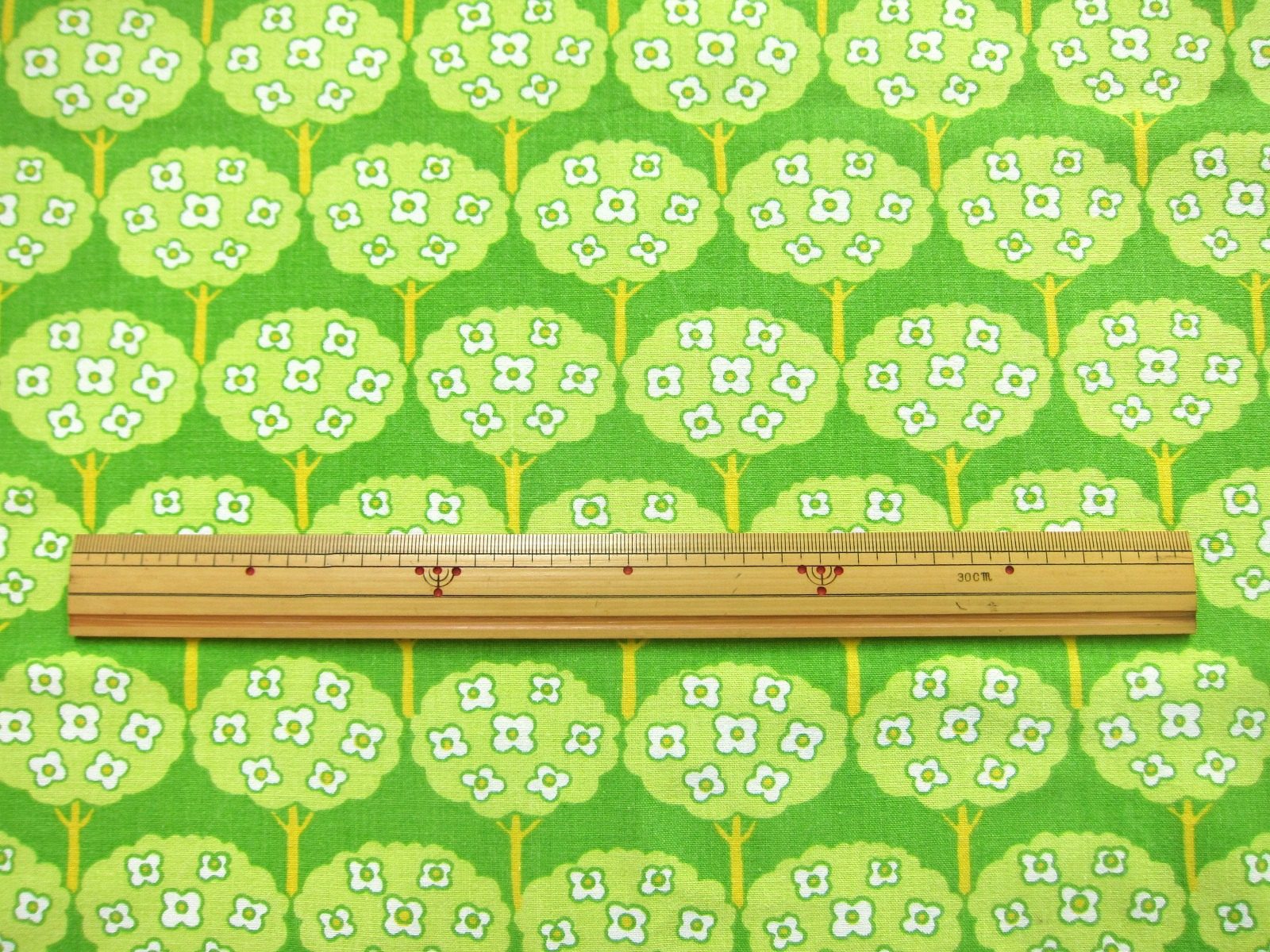 コンテンツにスキップ明るいグリーンの生地に無数の木々、まるで森を再現したような自然を感じられるユニークなデザインのレトロファブリック。