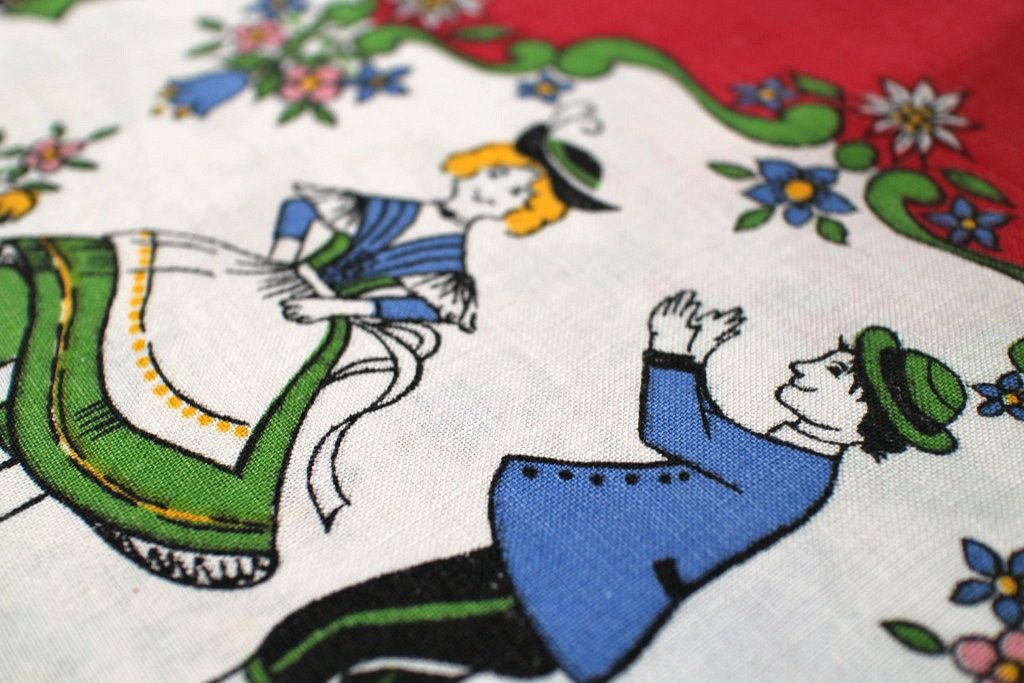 コンテンツにスキップドイツの民族衣装を着た男女が踊る、愉快なレトロ柄ビンテージファブリック。