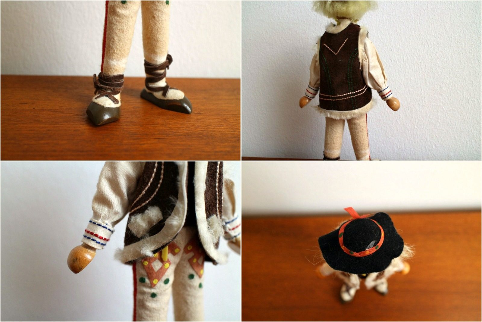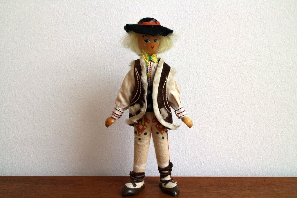 南ドイツ〜オーストリアのものと思われる民族衣装を身につけたレトロな木製人形。 ジャケット・ベルト・足の紐はスエード革製。 わずかですが手の角度を変えることができ自立も可能。 細部までとことんこだわった非常にクオリティの高い仕上がりとなっています。 お部屋のインテリアにこんなフォークロアな人形はいかが?