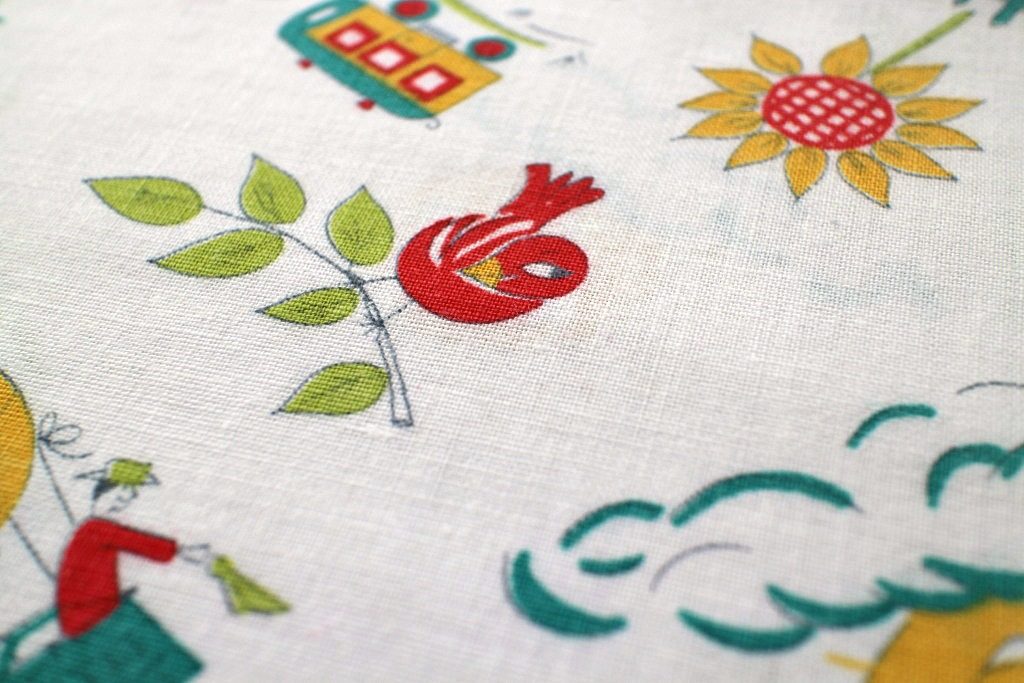 気球や機関車などユーモラスな子ども柄ヴィンテージファブリック 幅92cm