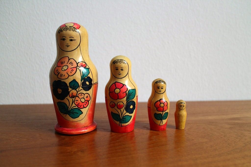 コンテンツにスキップ涼しげな表情と花模様が愛らしいロシアのマトリョーシカ4人娘