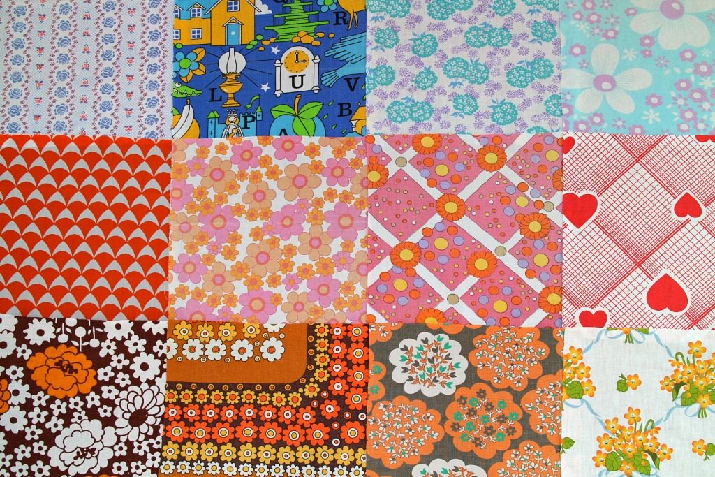 暖色系花柄を中心に集めたレトロ柄生地はぎれセット。