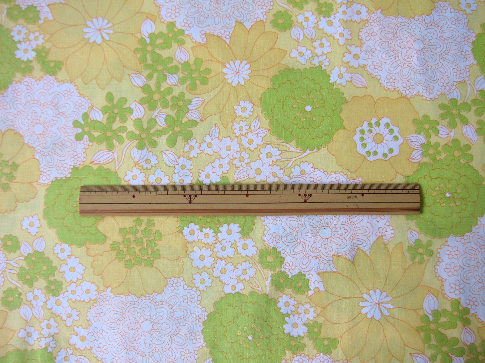 淡い黄色と緑が春っぽい心地良さ 花柄ビンテージファブリック 幅150cm