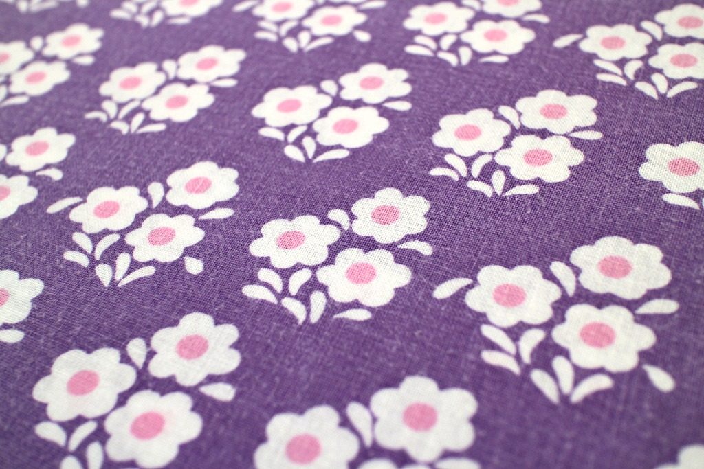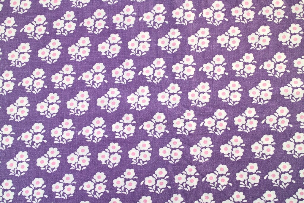 渋めの紫に可憐な白いお花模様のヴィンテージファブリック 幅130cm