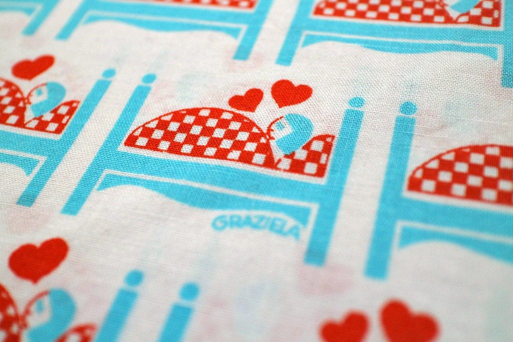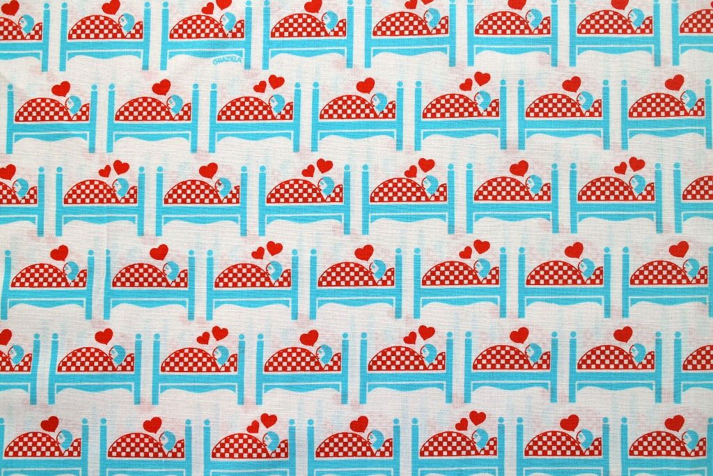 コンテンツにスキップ水色ベッド&赤色市松のお布団が可愛いGrazielaの人気子ども柄レトロ生地。