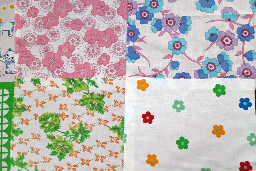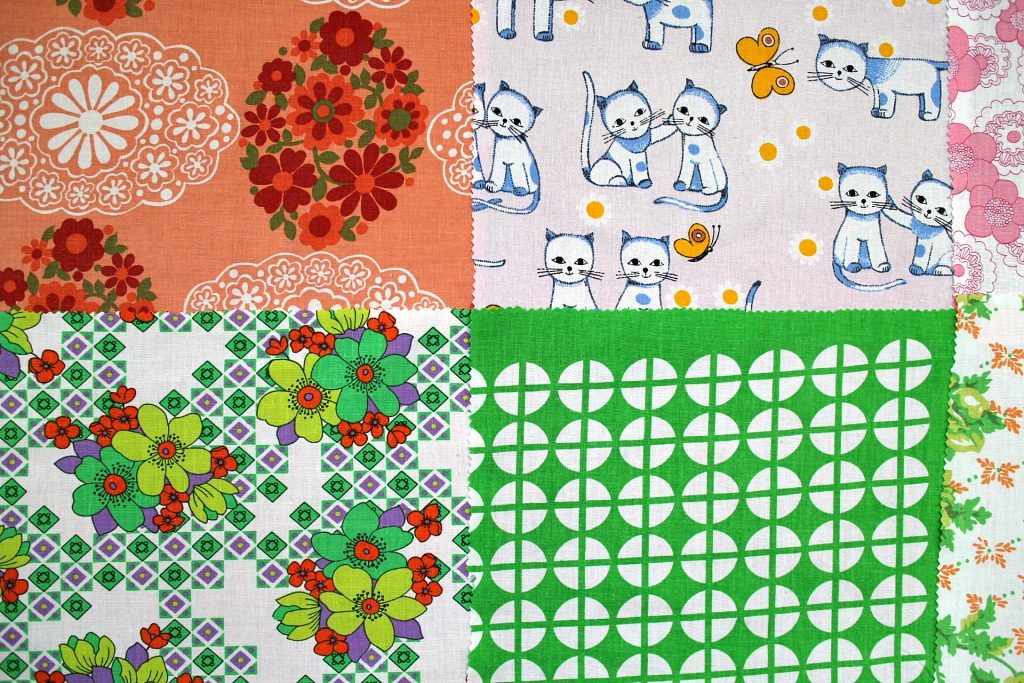 猫柄幾何学柄などレトロよりどりみどりのヴィンテージはぎれ12枚セット