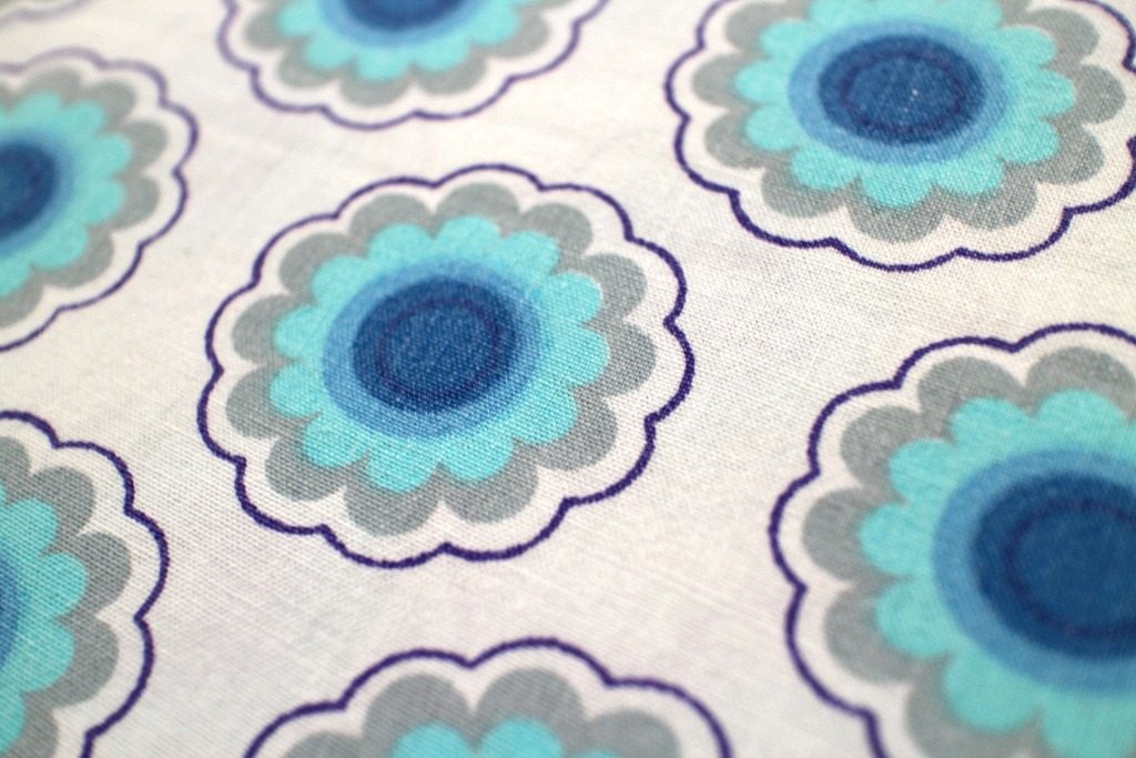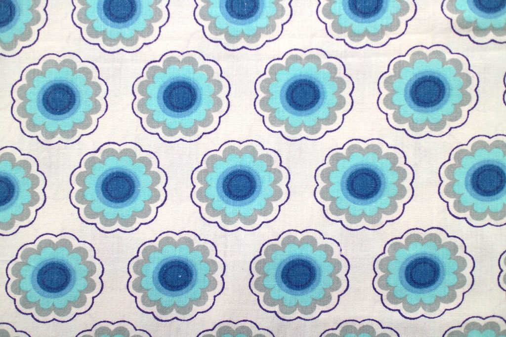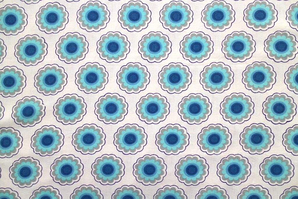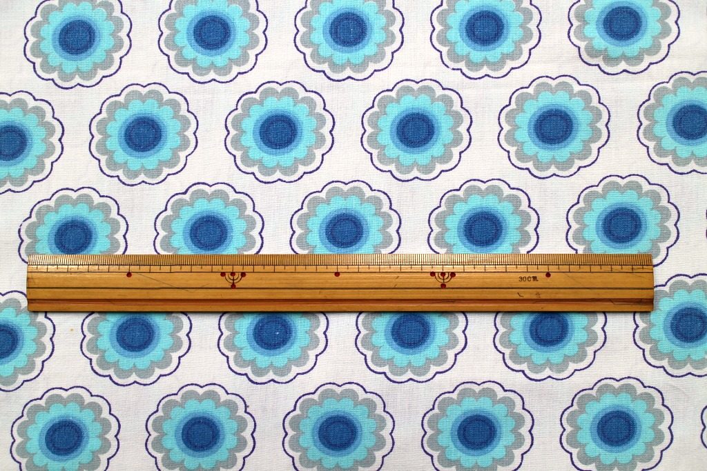 コンテンツにスキップ水面に輪紋を描いたようなお花のモチーフが一面に広がるクールな印象のヴィンテージファブリック。