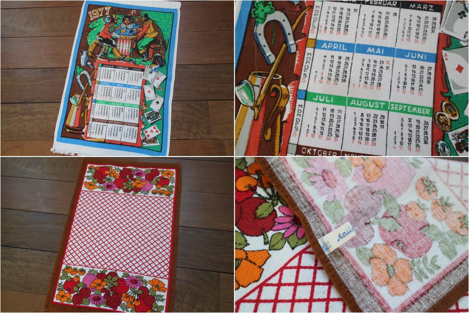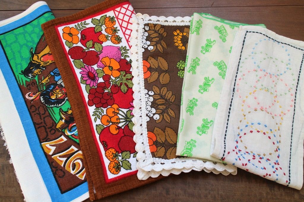 ベルリンの蚤の市で見つけた、レトロな風合いたっぷりのティータオル5枚セット。