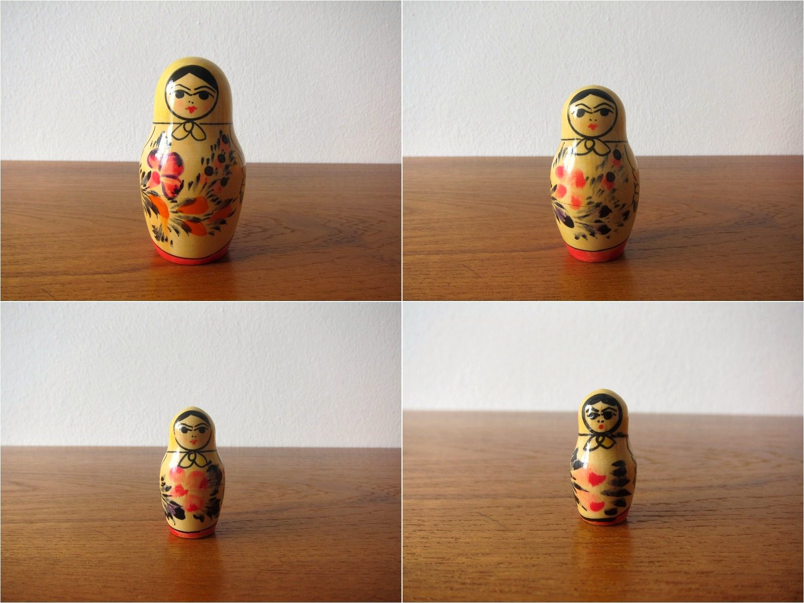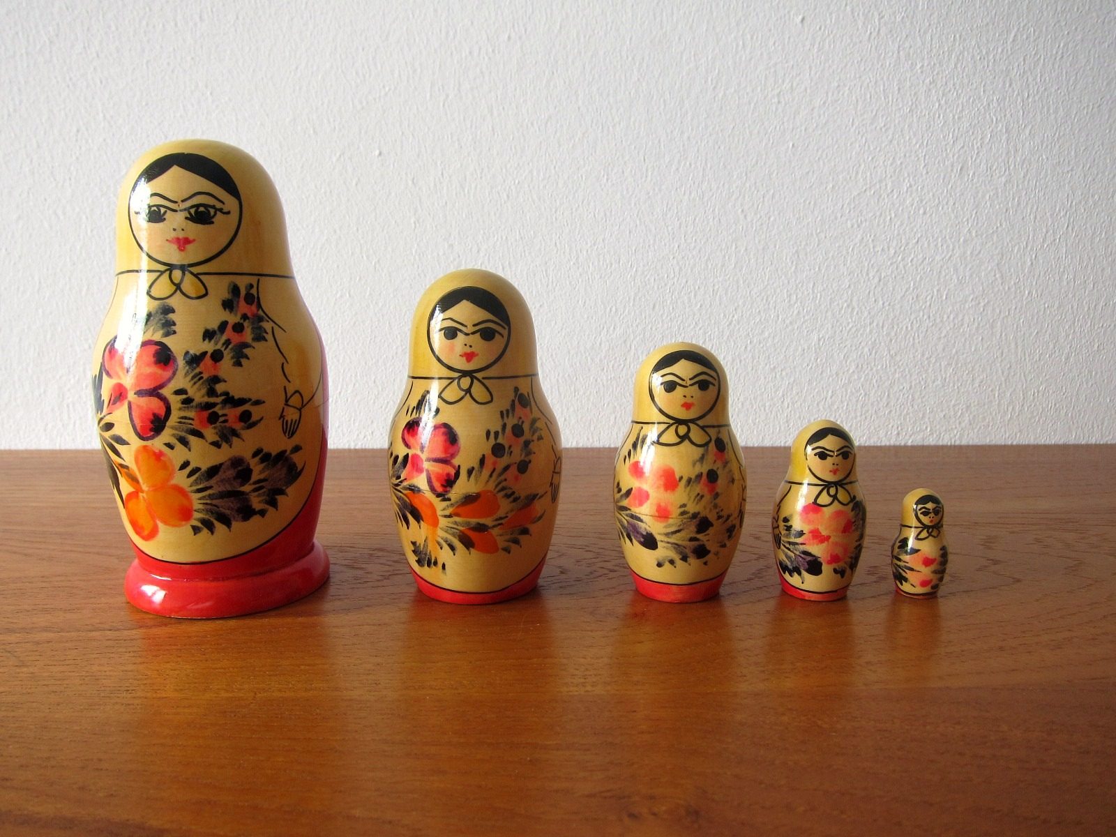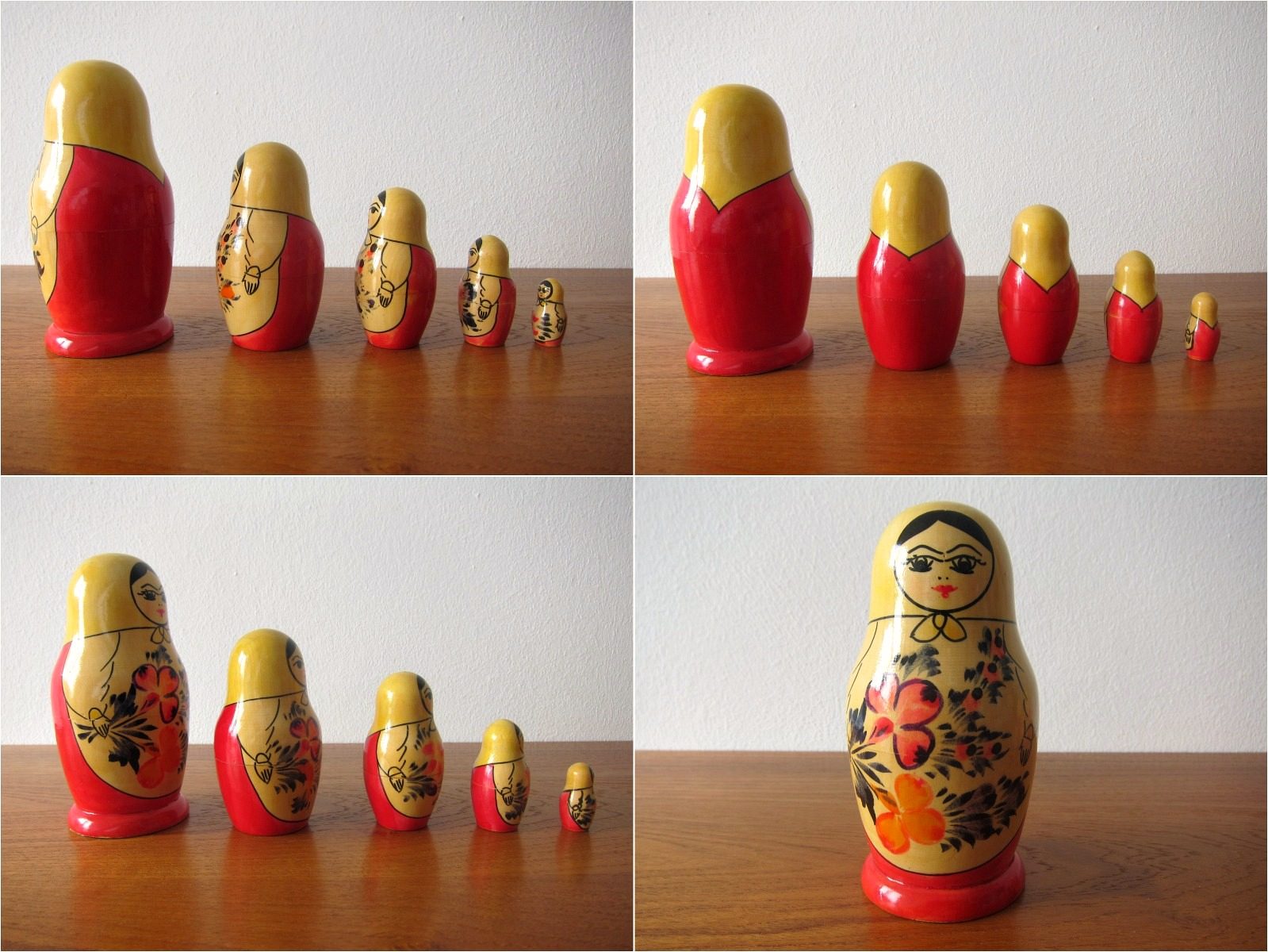 真紅の民族衣装が美しい ロシアの木製人形マトリョーシカ5体