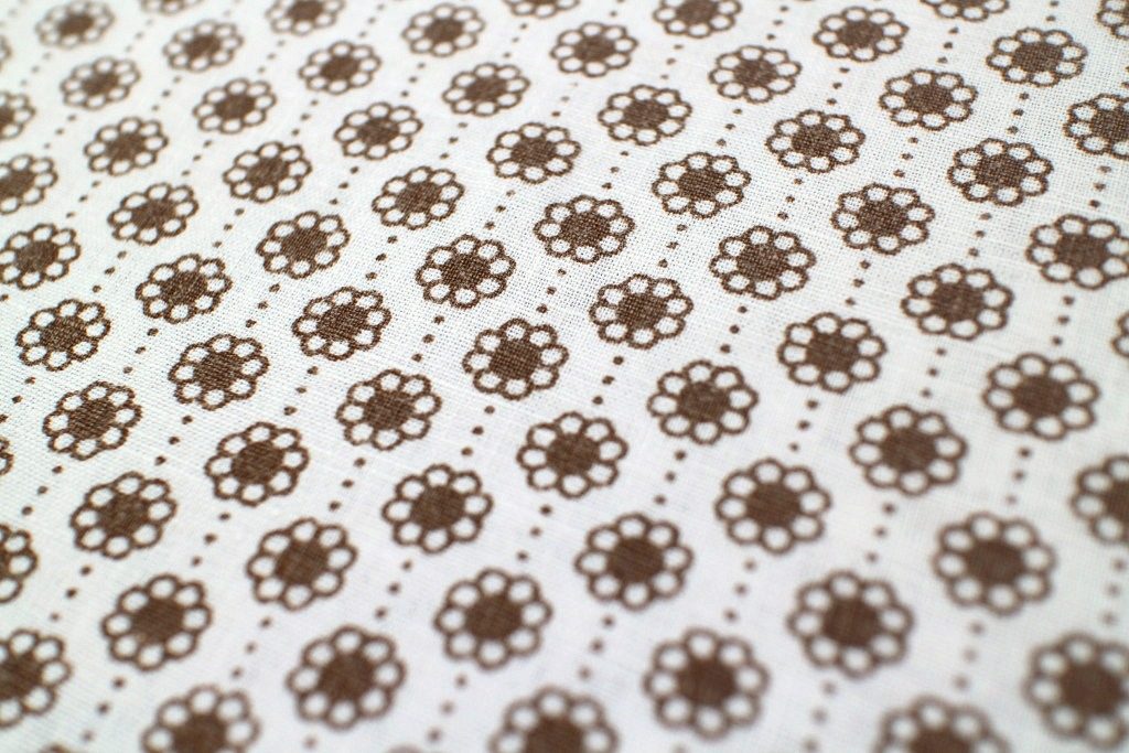コンテンツにスキップ小さな小さなお花がドットになって連なった、無機質な印象の白色レトロ生地。