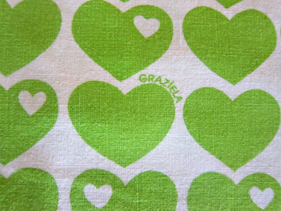 緑のハート柄のグラジエラ 70年代ファブリック 幅88cm