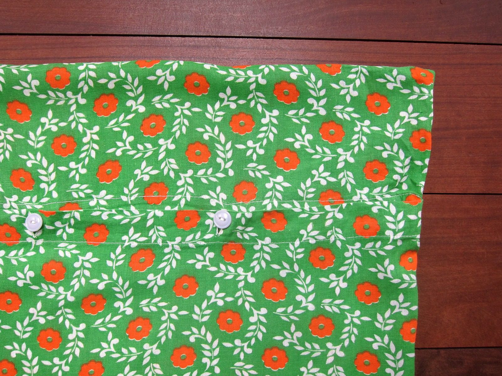 緑色に赤いお花 レトロなピローケース ビンテージ