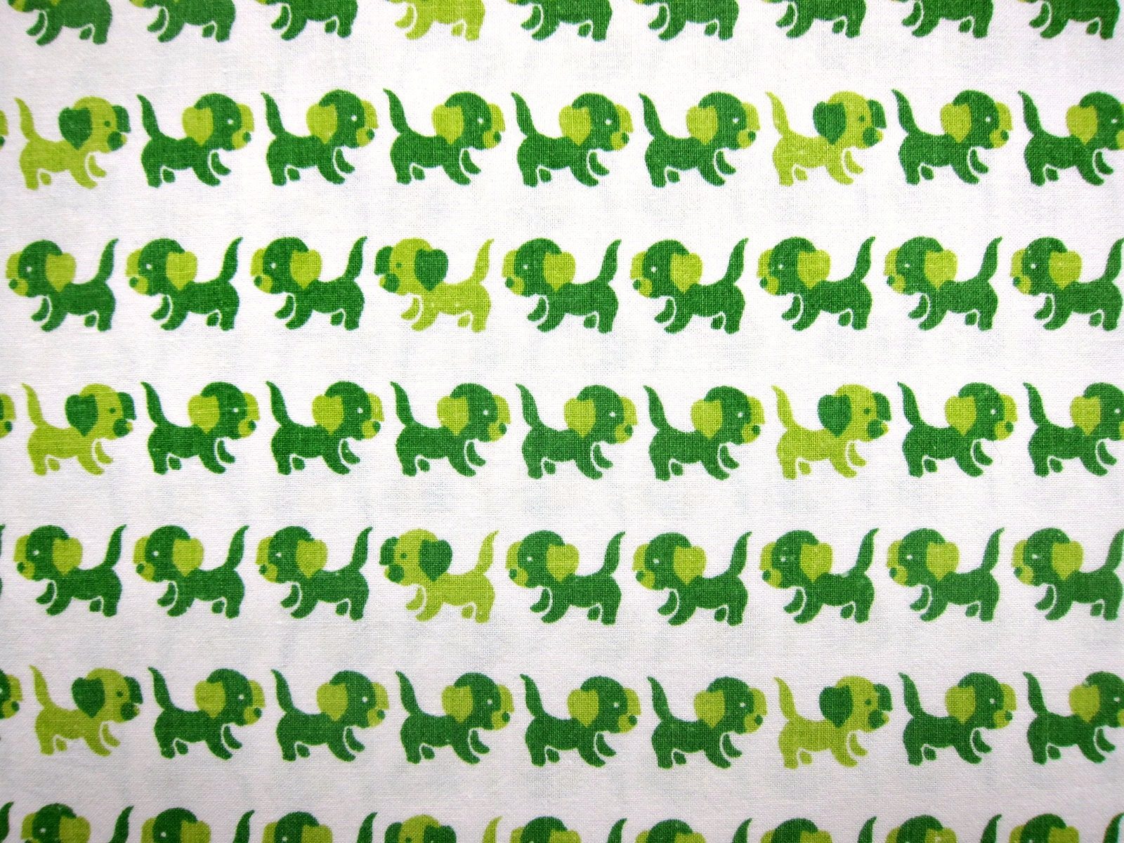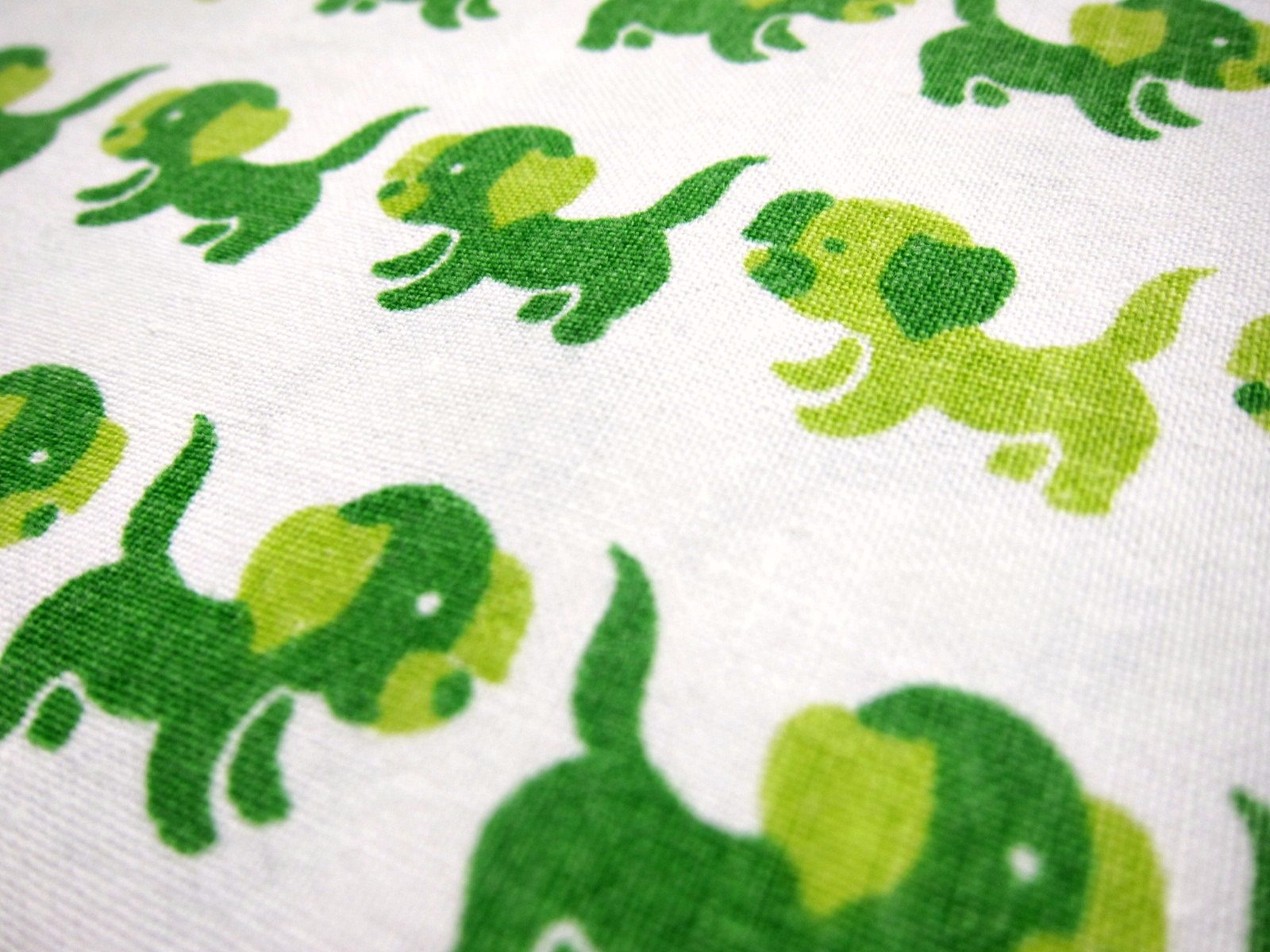 大変人気の高い犬のイラストのヴィンテージ生地。 その上更にレアなグリーン系のものです。