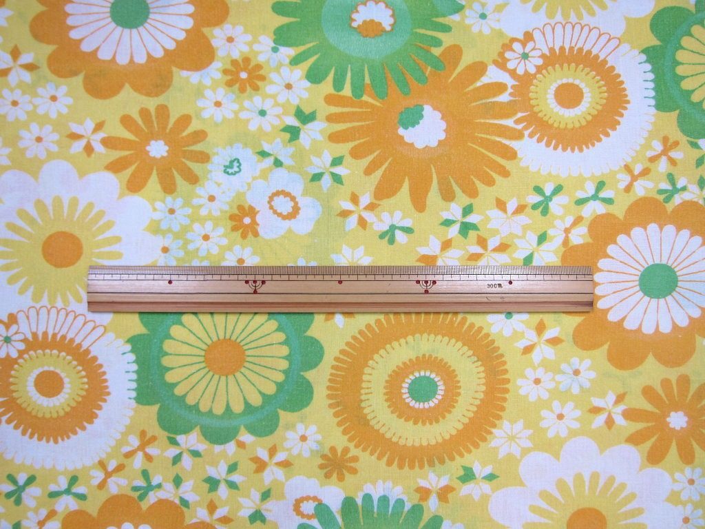 コンテンツにスキップグリーンを差し色にした黄色系フラワープリント。