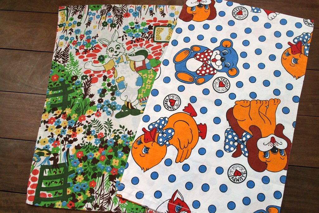2. レトロコミックから抜け出たようなキュートな動物柄(テディベア・猫など) サイズ: 38cm x 62cm