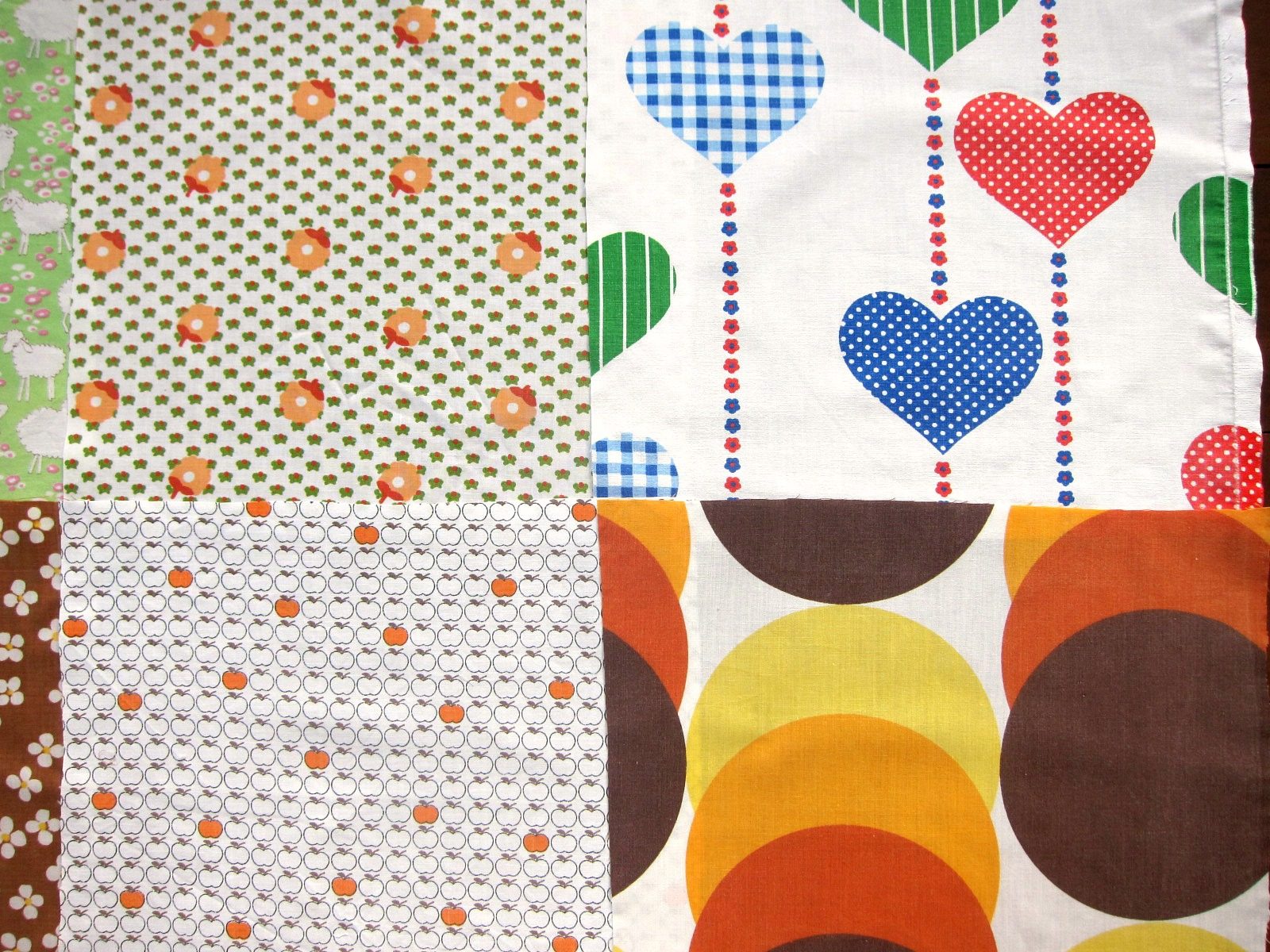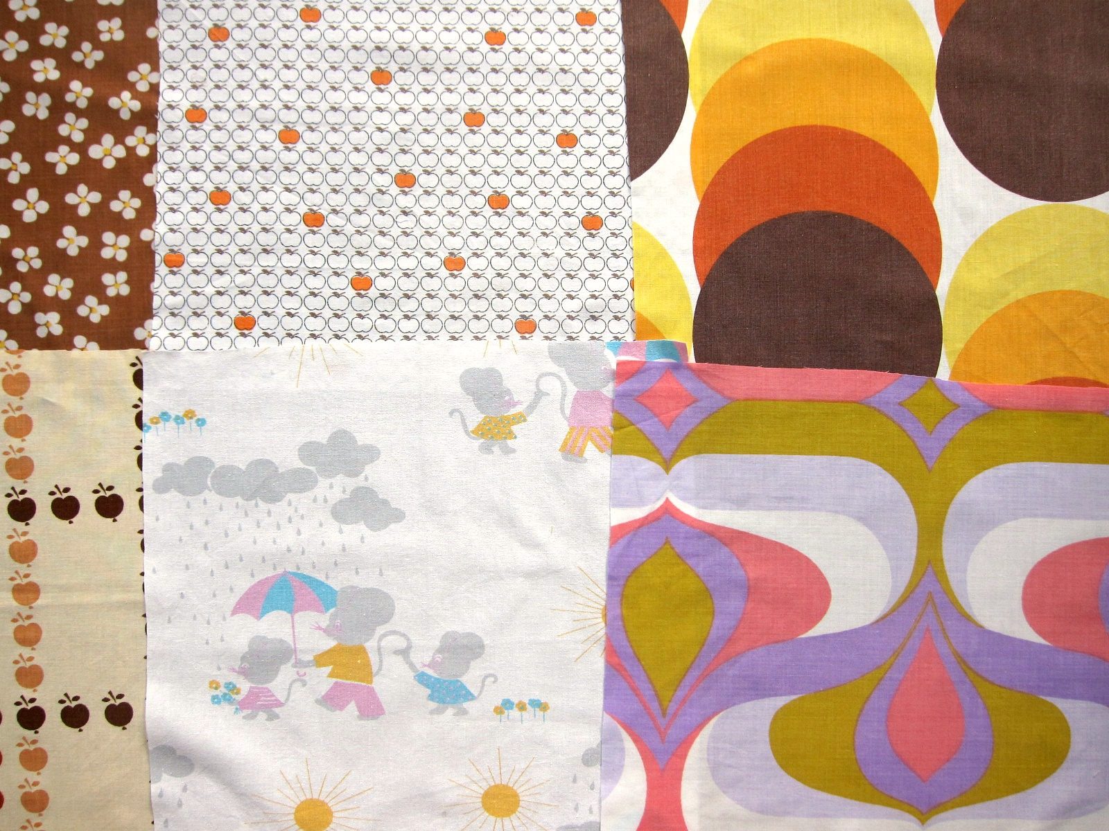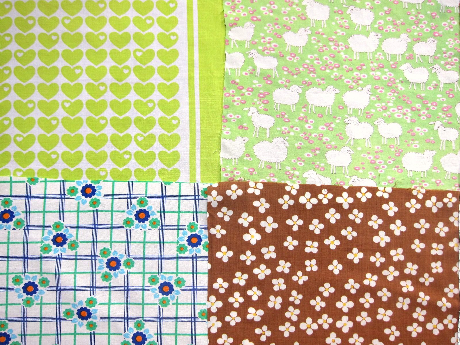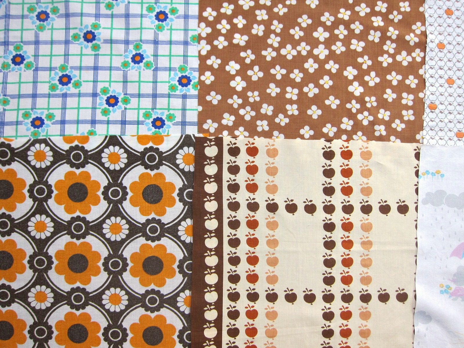 ブラウンとグリーン系を中心に集めた70年代のヴィンテージファブリックはぎれセット。