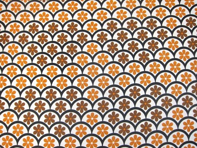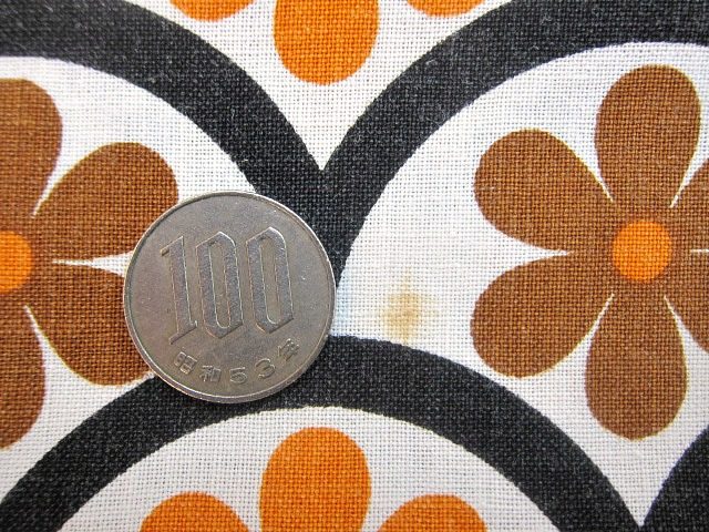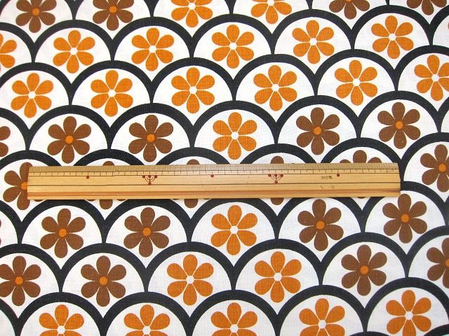 茶色とオレンジ 賑やかな花柄ヴィンテージ生地 幅105cm