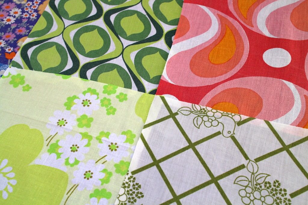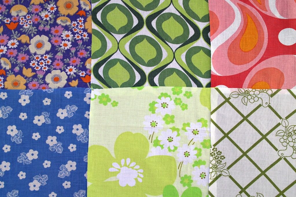 コンテンツにスキップ華やかフローラルにサイケな幾何学柄ほかヴィンテージはぎれ6枚セット(20センチ角)