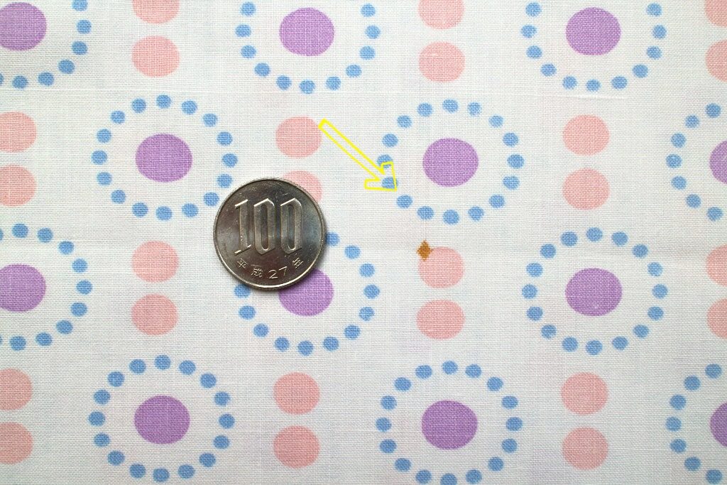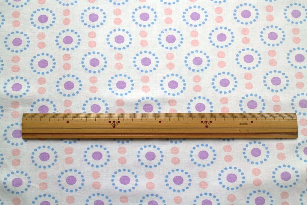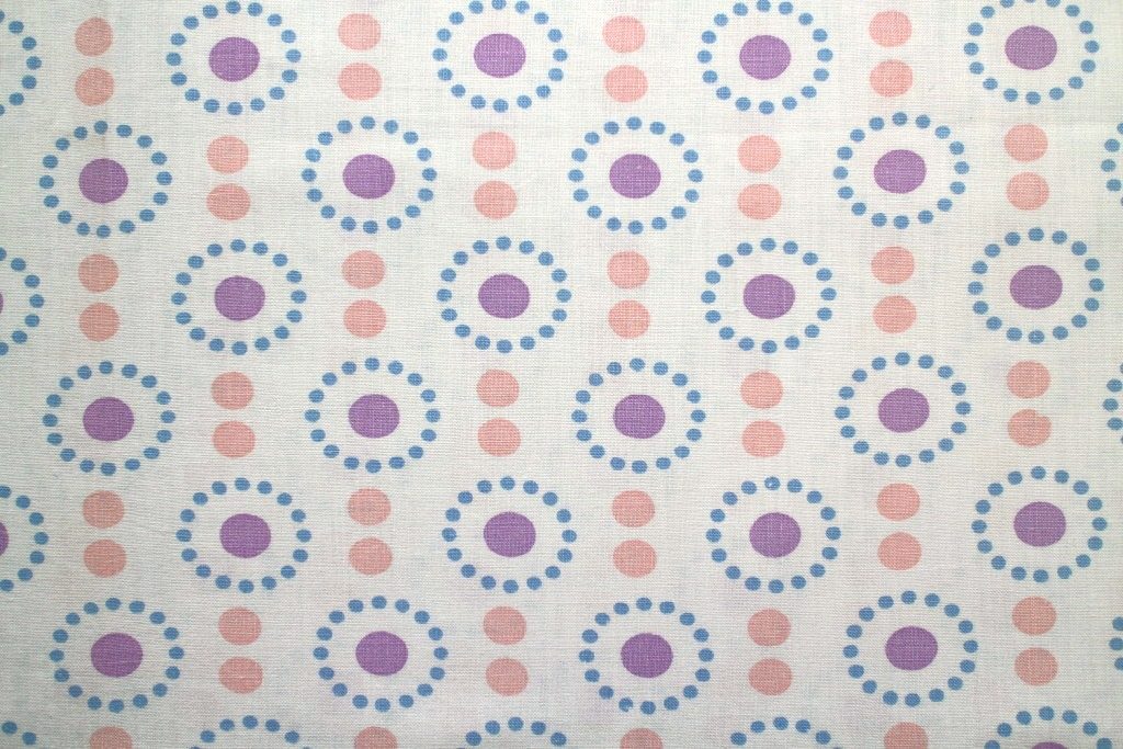 コンテンツにスキップピンクとパープルのドットが並んだ可愛らしいデザインのヴィンテージ生地。