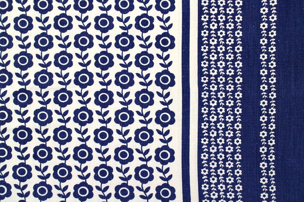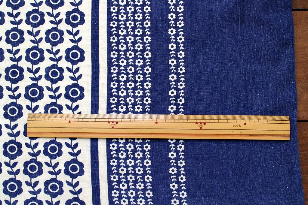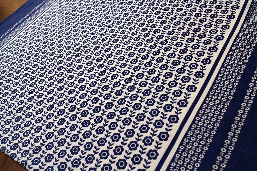 生地の両端約20センチには同パターンの白抜きフラワーが配置されています。
