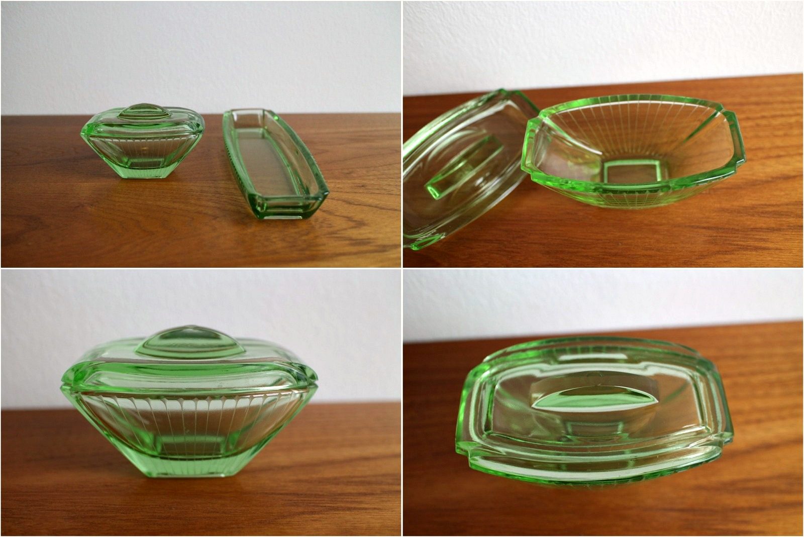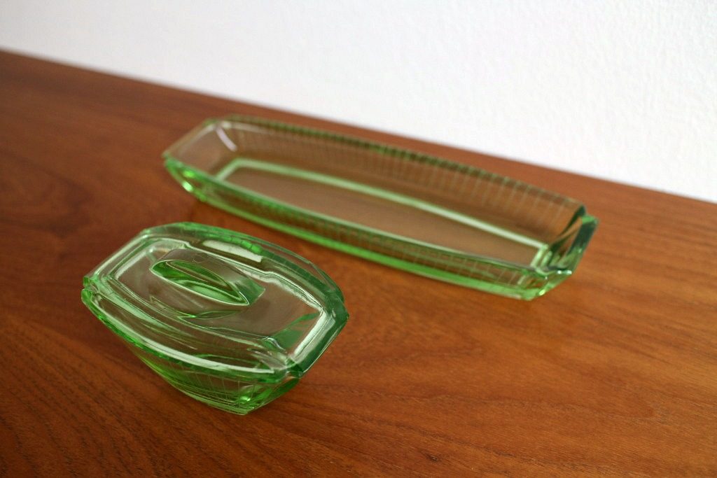 コンテンツにスキップ蚤の市で発掘したアンティークなガラス小物入れ2点セット(グリーン)