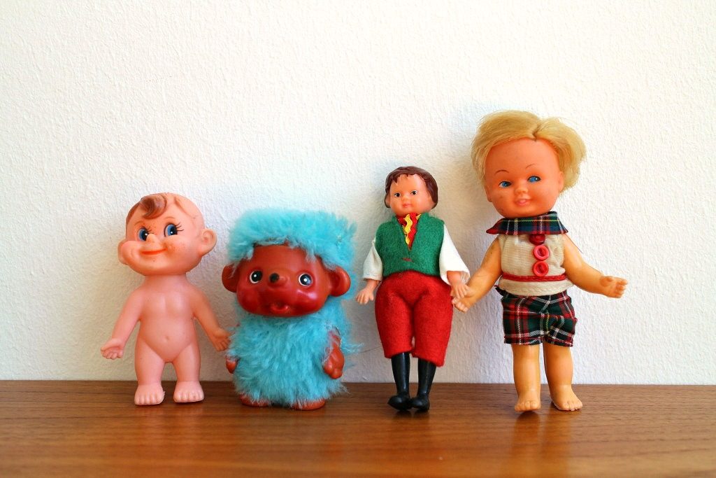 蚤の市で発掘! レトロなお人形あれこれ4体セット。