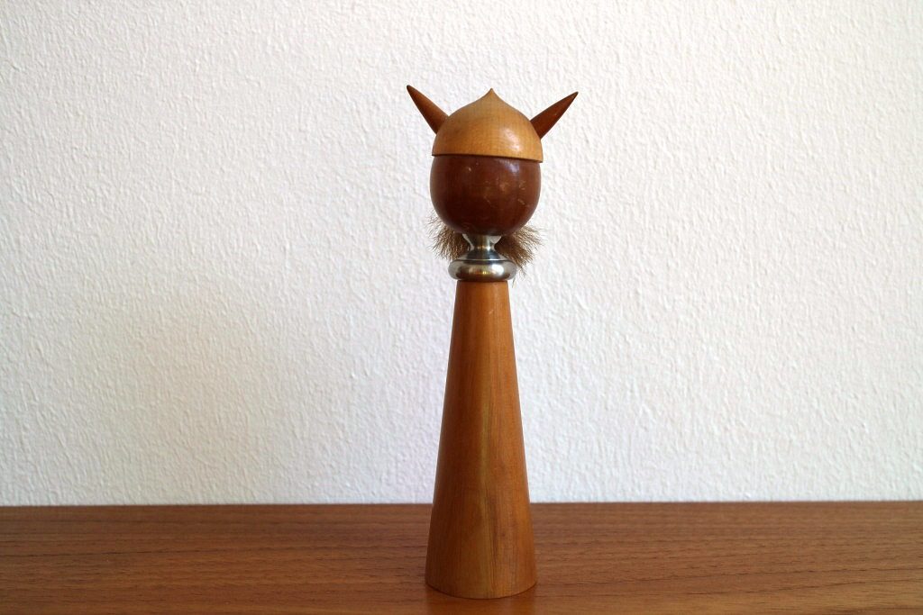 角付きヘルメットのバイキング調・木製ヴィンテージ栓抜き