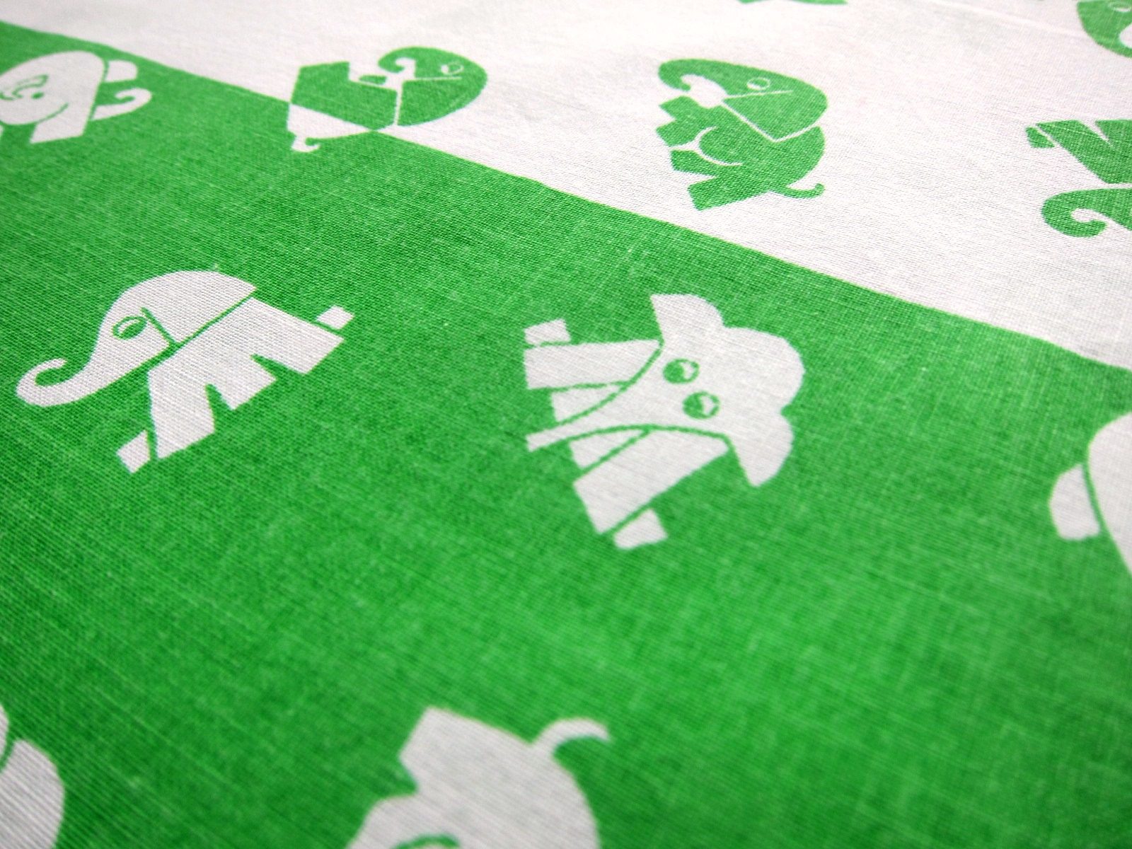 象さんのおどけた表情が愉快なヴィンテージファブリック 幅90cm x 長さ120cm
