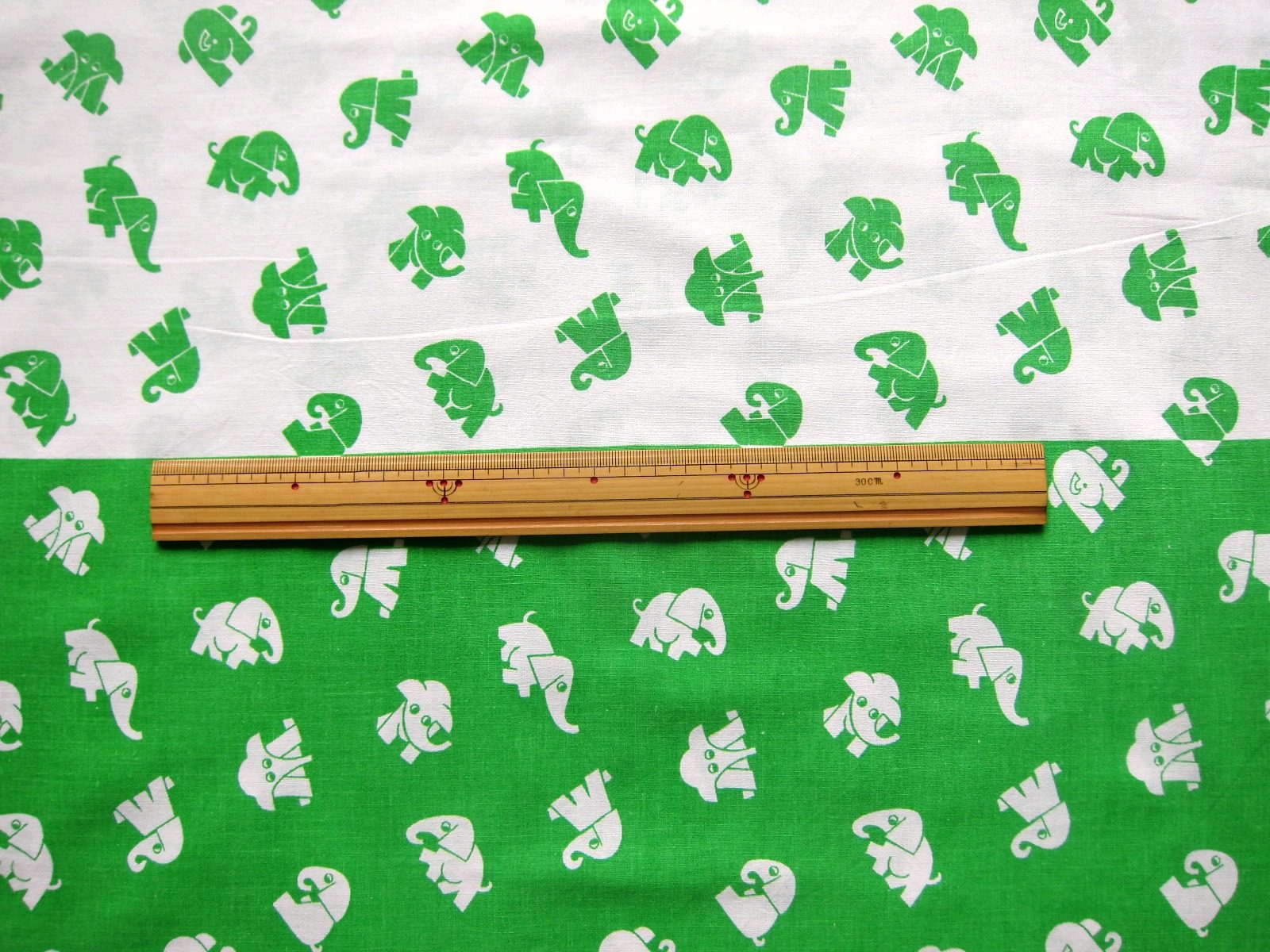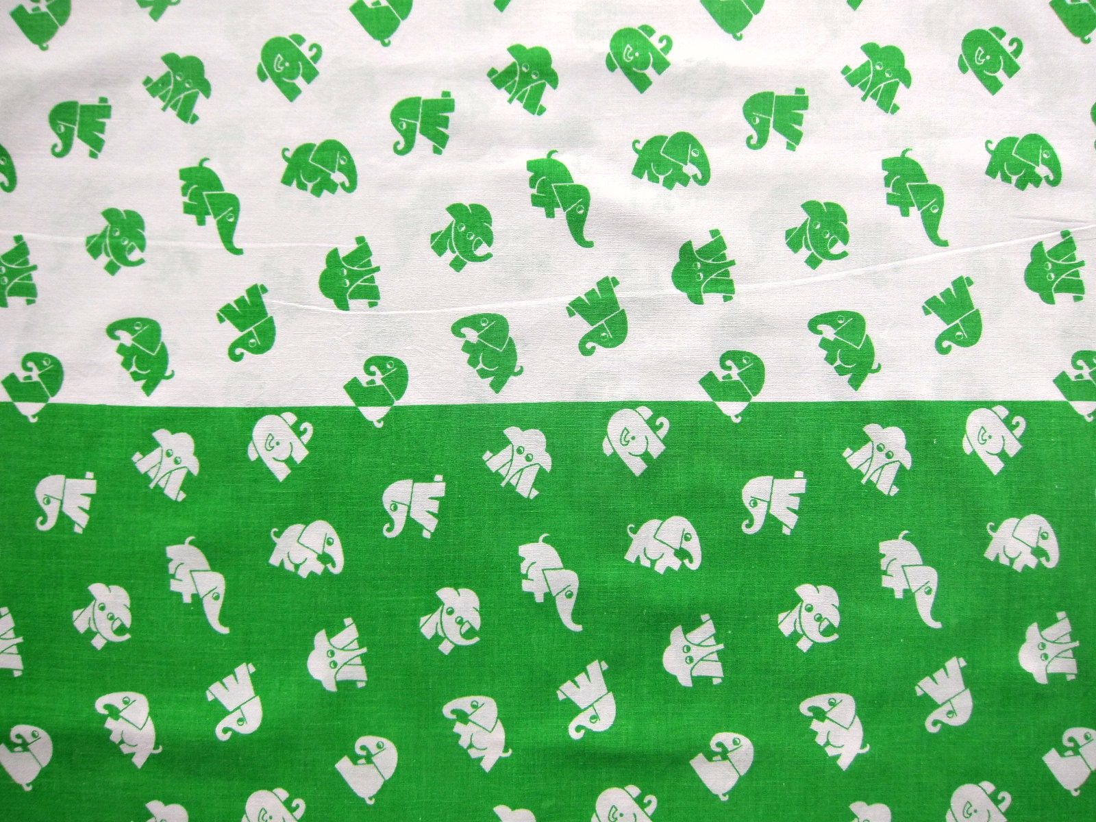 上から約40cmが白地に緑のゾウ、残りがその反転カラーとなっています。