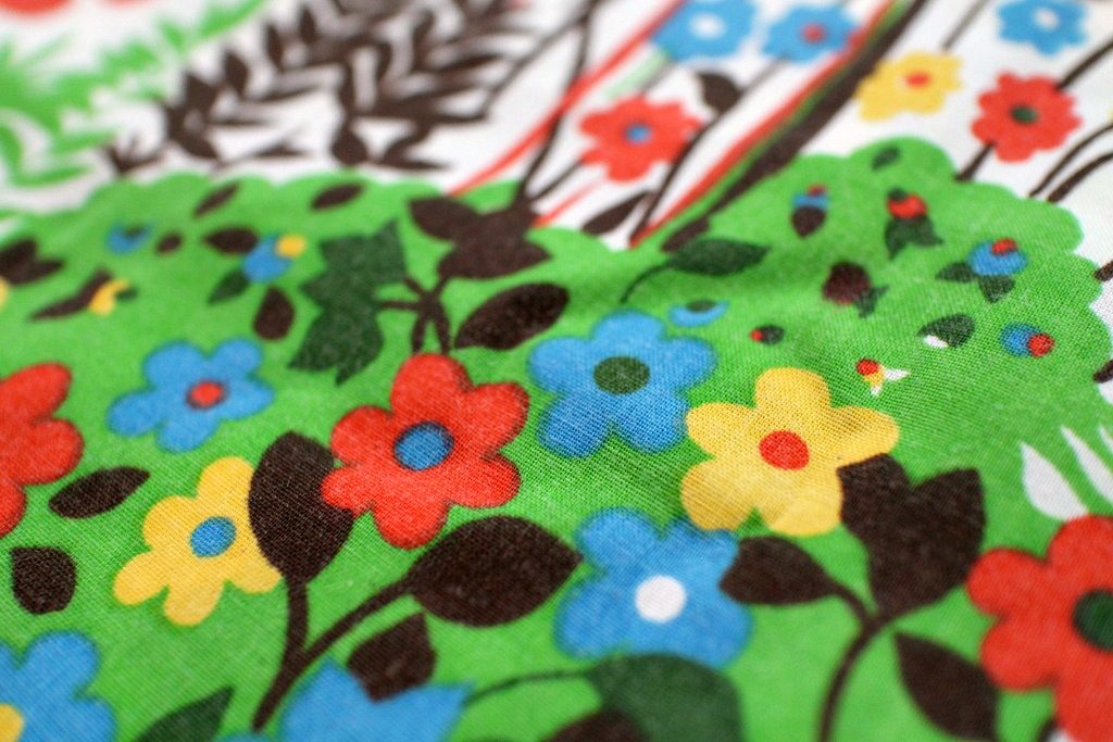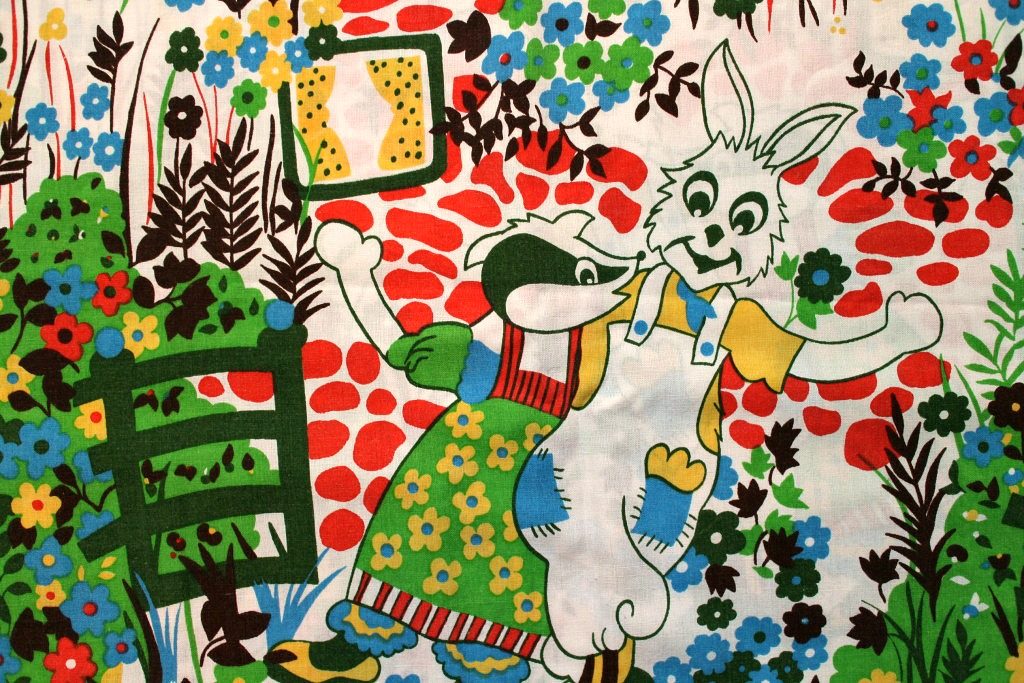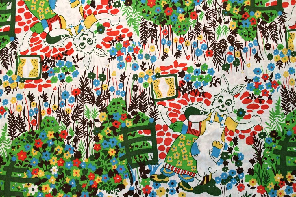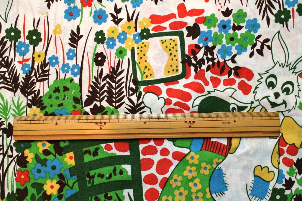 擬人化されたシュールな動物イラストがいかにもレトロな、英国製ヴィンテージファブリック。