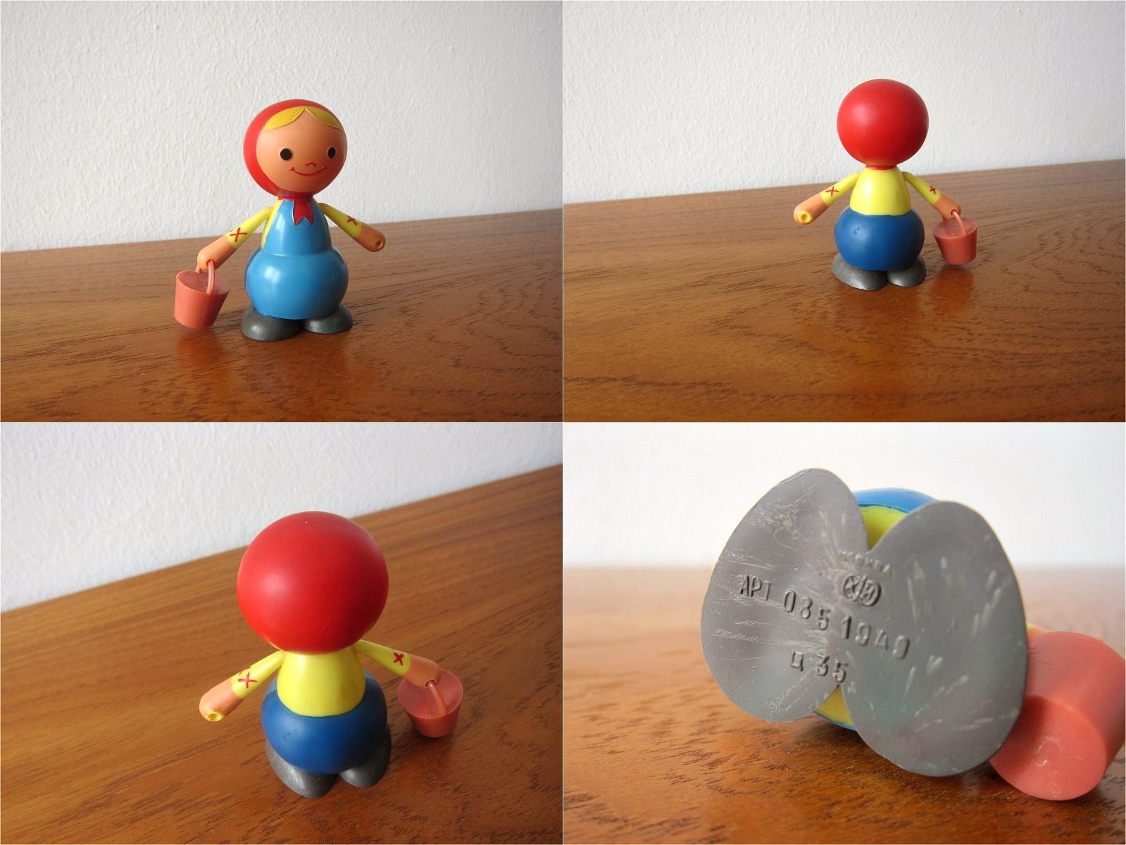 ベルリンの蚤の市で見つけました。 赤い頭巾がチャーミングなレトロな女の子の置き物です。黄色の服に、青いエプロン。くりくりとした黒い目と元気いっぱいな雰囲気です。バケツを手に持って外に遊びに行くところでしょう。