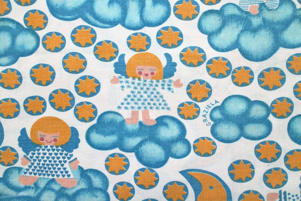 コンテンツにスキップハートやりんご柄で人気のグラジエラ、非常にレアなエンジェル柄レトロ布を入荷しました。