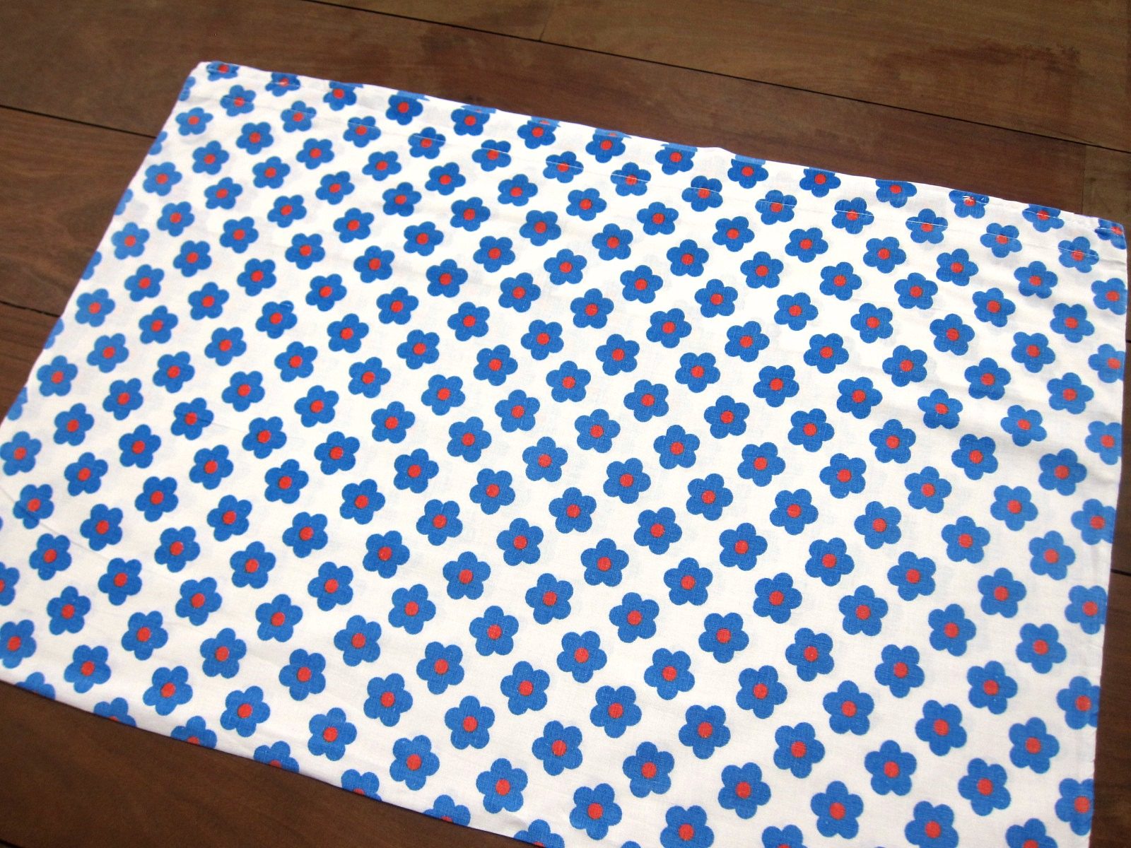 小さなお花のモチーフがシンプルでかわいいヴィンテージピローケース。 青と赤の二色のフラワーパターンです。 小さめサイズのピローケースです。