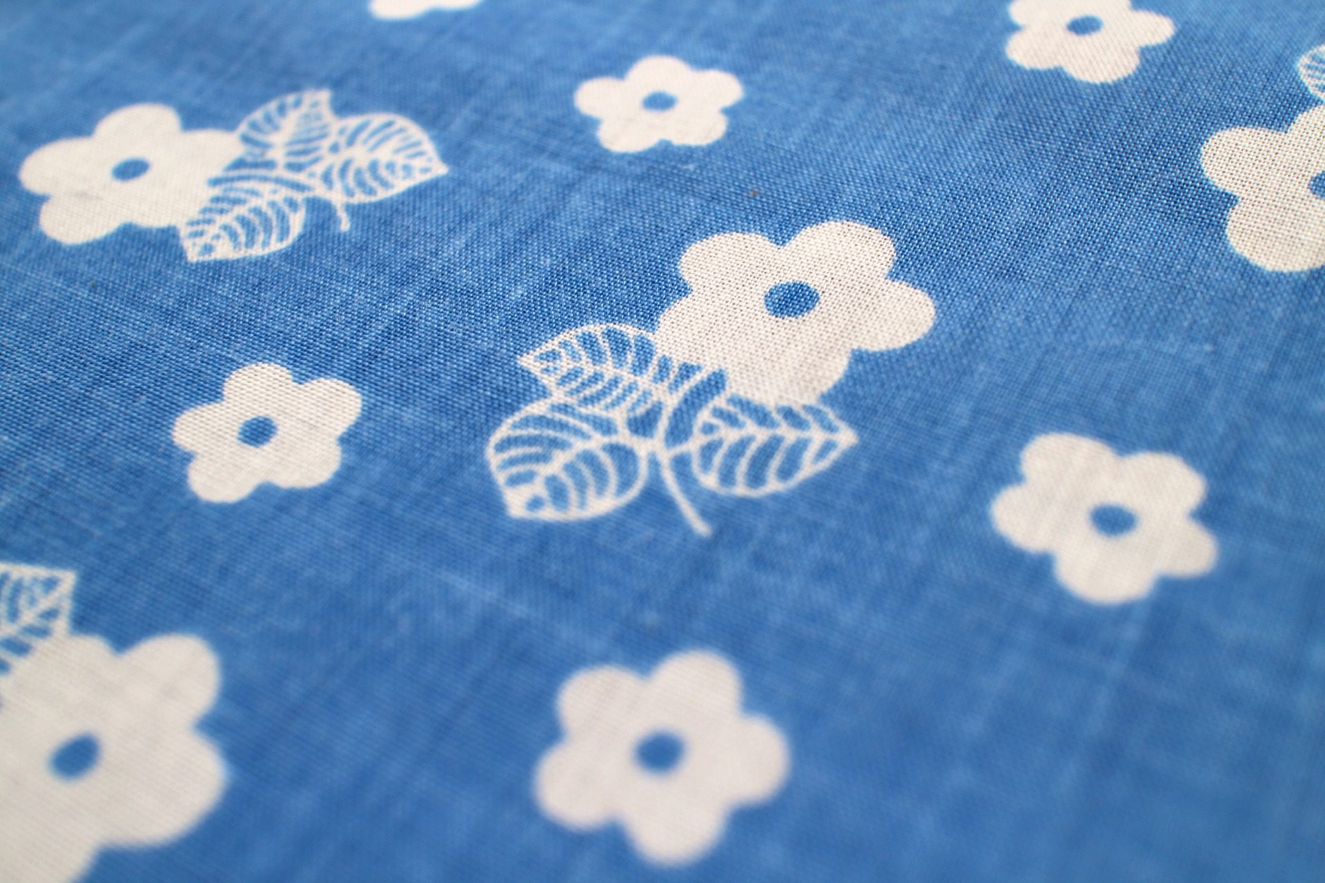 コンテンツにスキップ子供の頃に作ったお花のスタンプを一面に押したような、懐かしいデザインのヴィンテージ生地です。