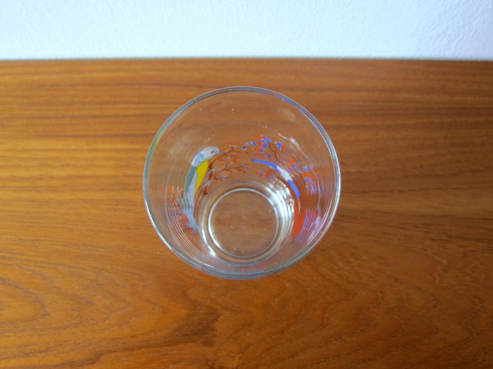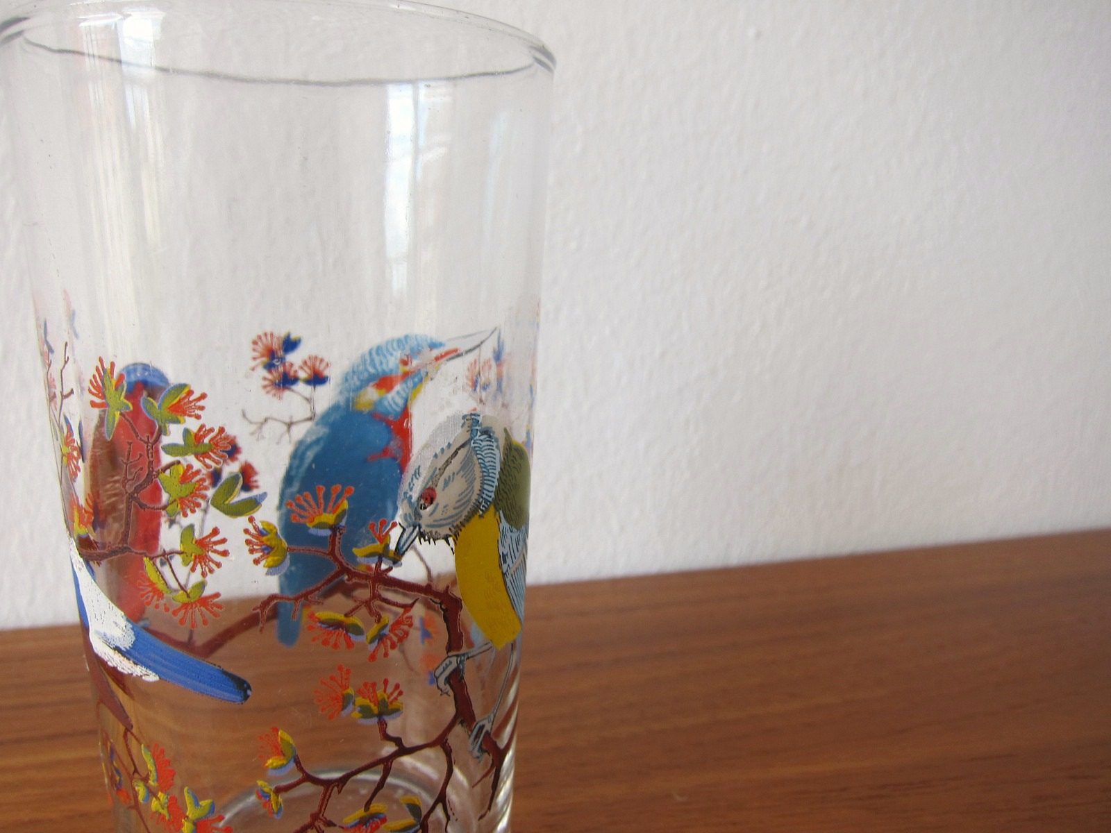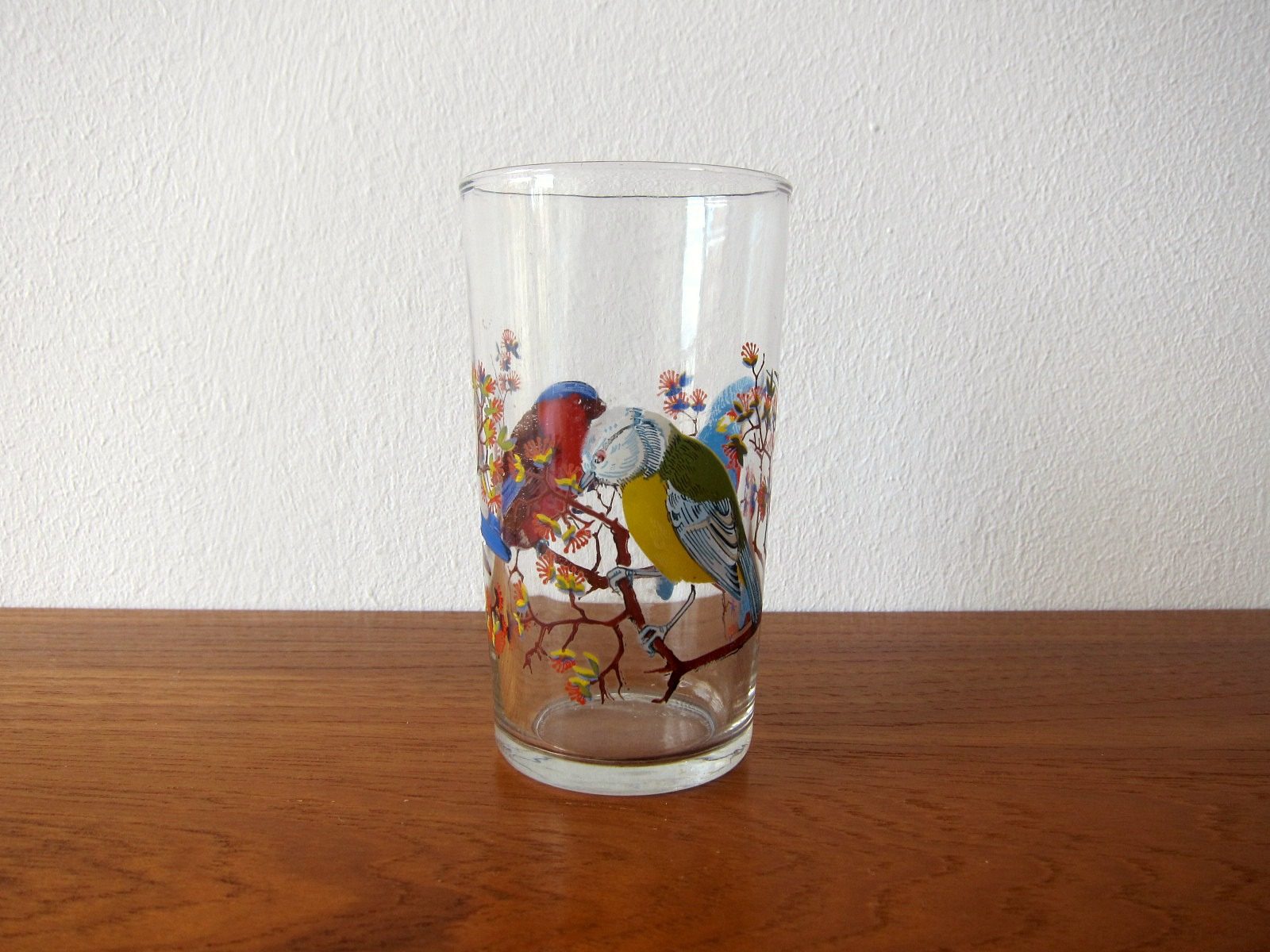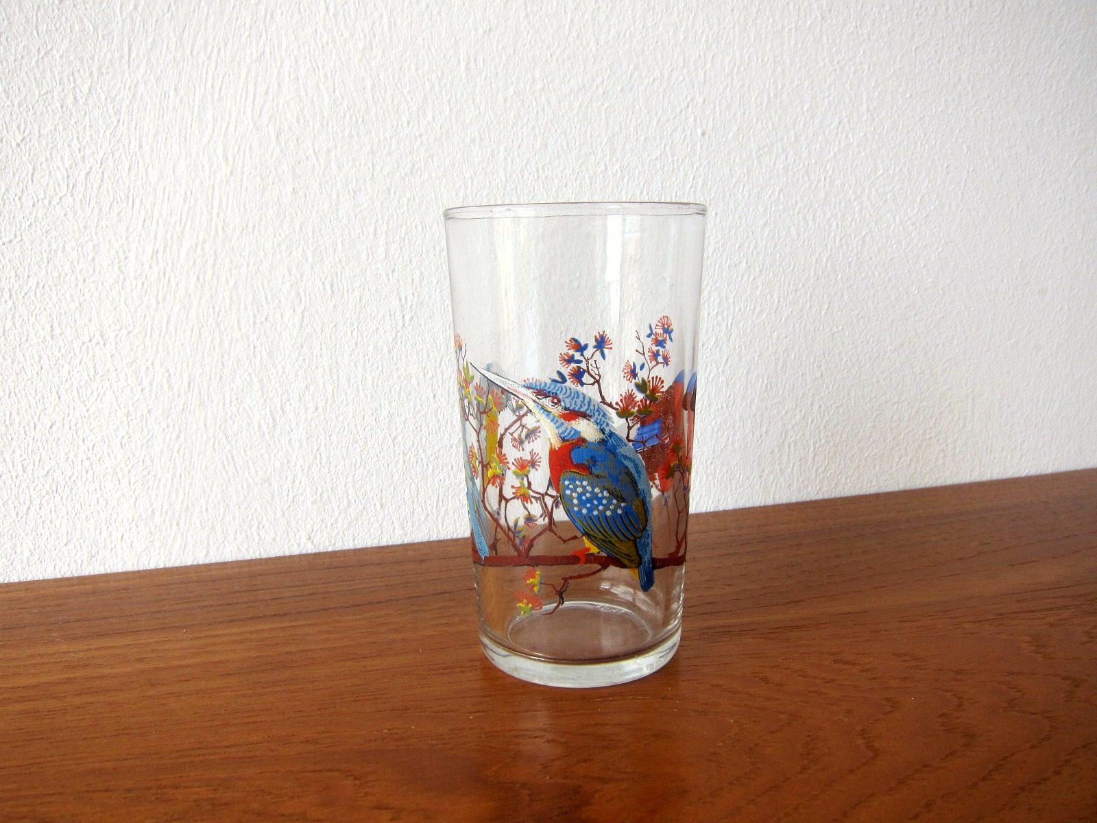 3羽の美しい鳥が描かれたガラス製コップ。 今にも歌い出しそうな繊細なタッチが魅力です。 底にはFRANCEの文字あり。