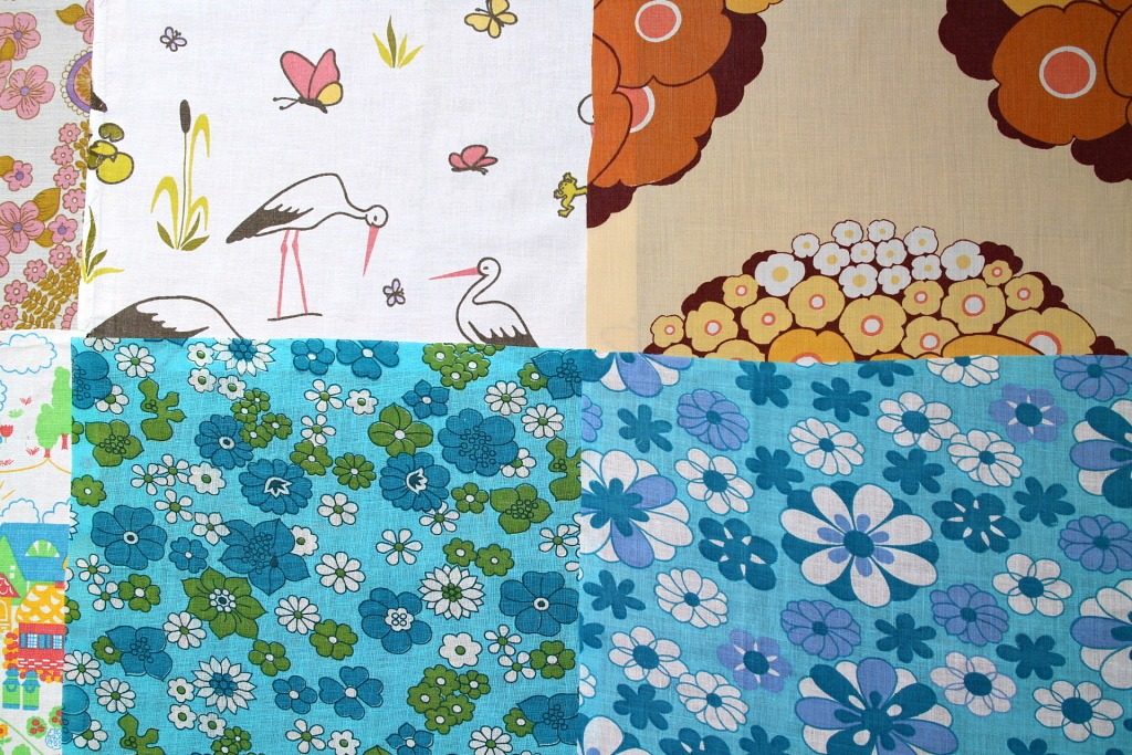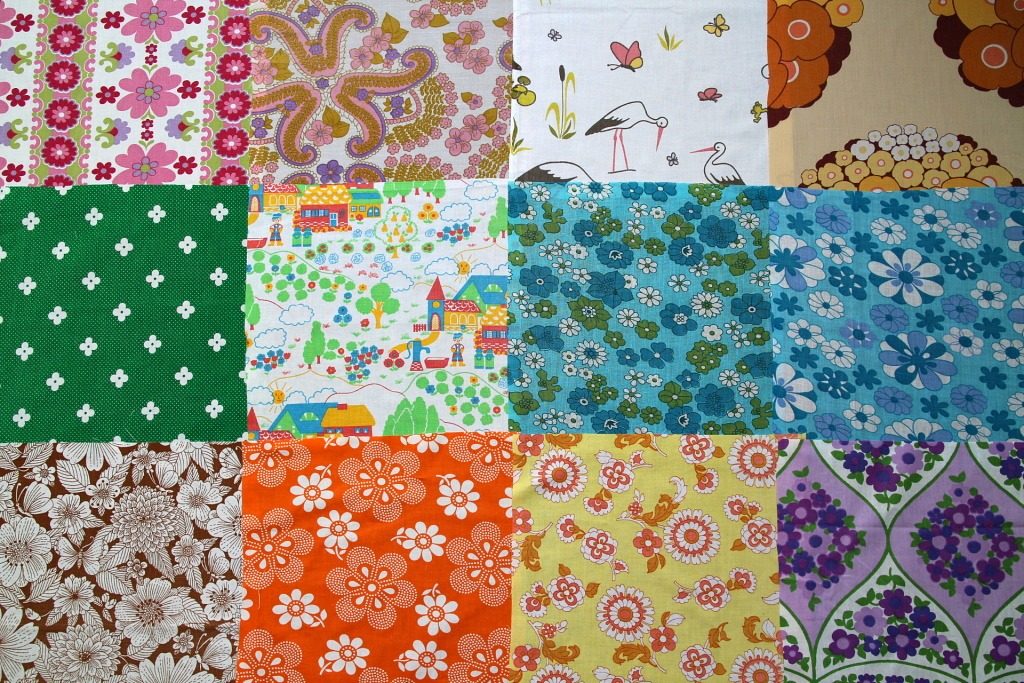 レトロモチーフにサイケ風など多彩な表情のフラワープリントのコレクションに人気のバード柄こども柄をプラスしたヴィンテージカットクロス12枚セット。