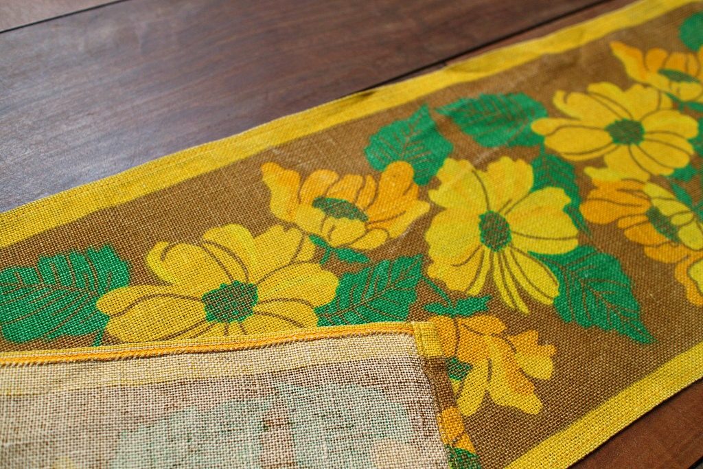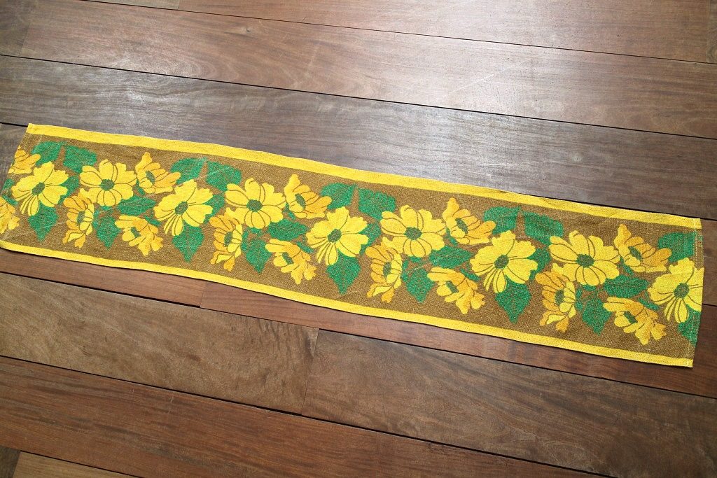 黄色いお花のジュート素材ヴィンテージテーブルセンター 113cm x 23cm