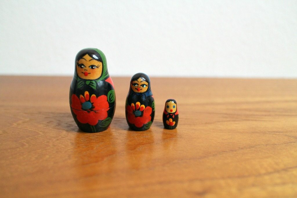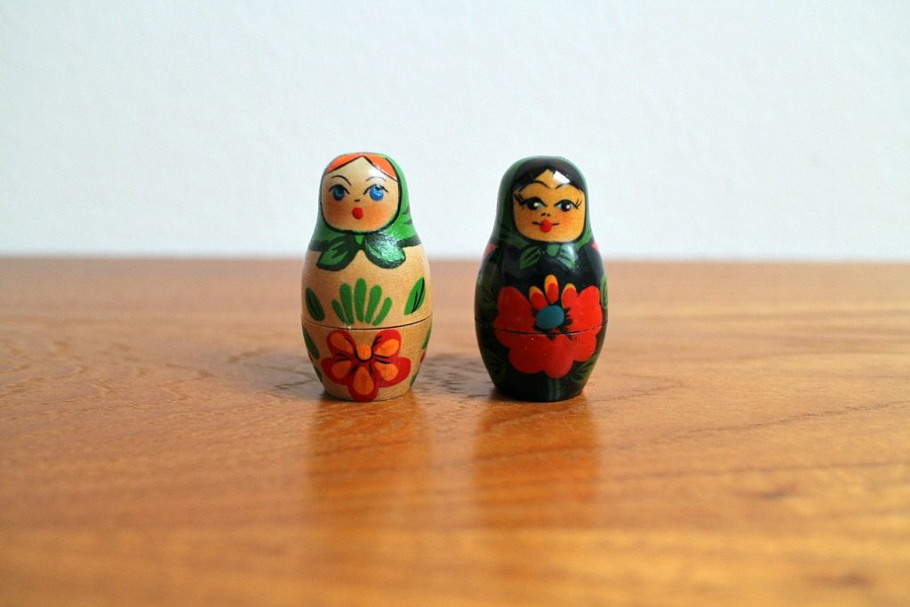 ロシアの伝統人形マトリョーシカの2体セット。